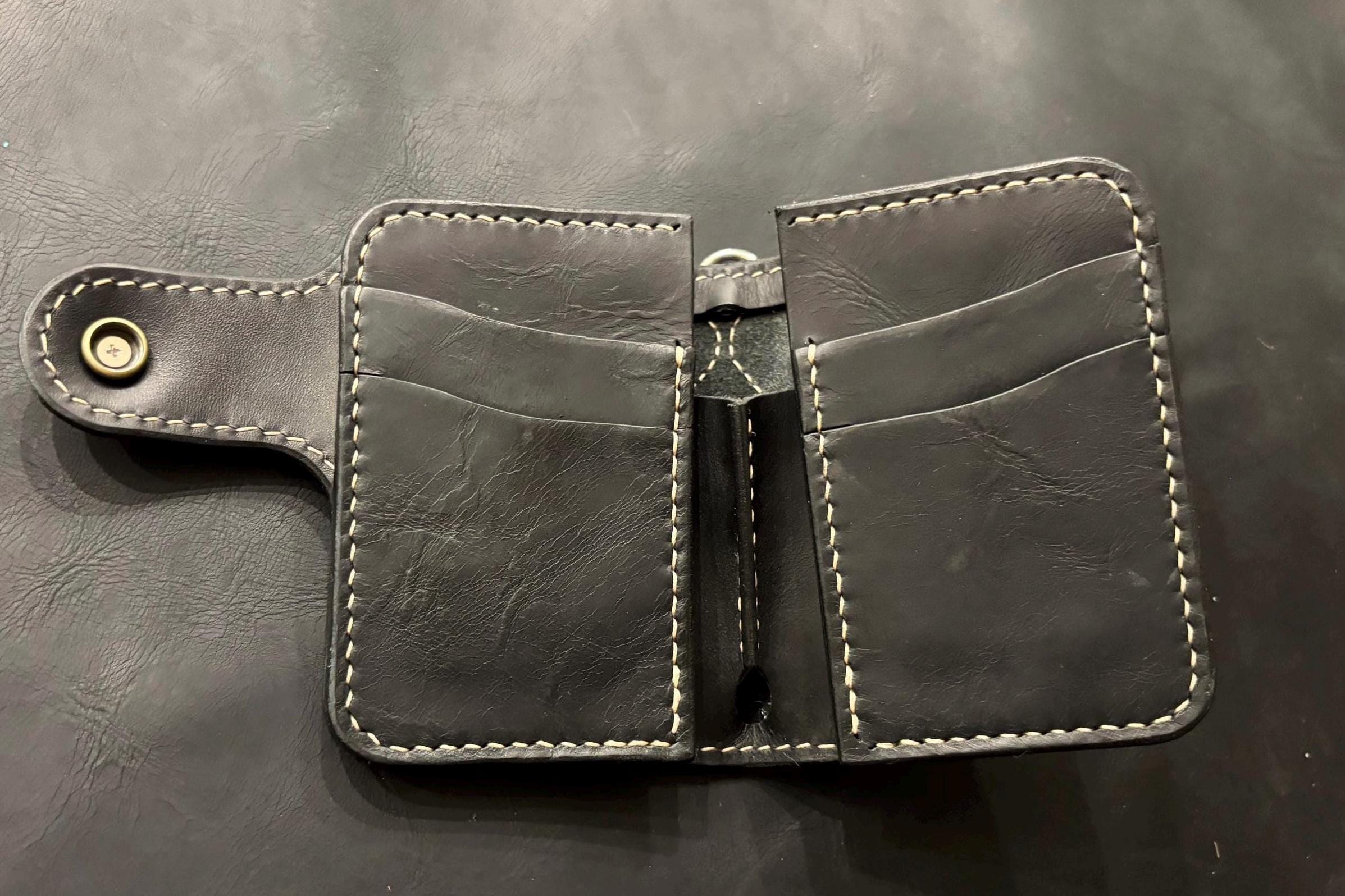 Hand-stitched biker wallet made from rugged vegetable-tanned Italian leather (Conceria La Bretagna). Comes with braided lanyard & lifetime guarantee!