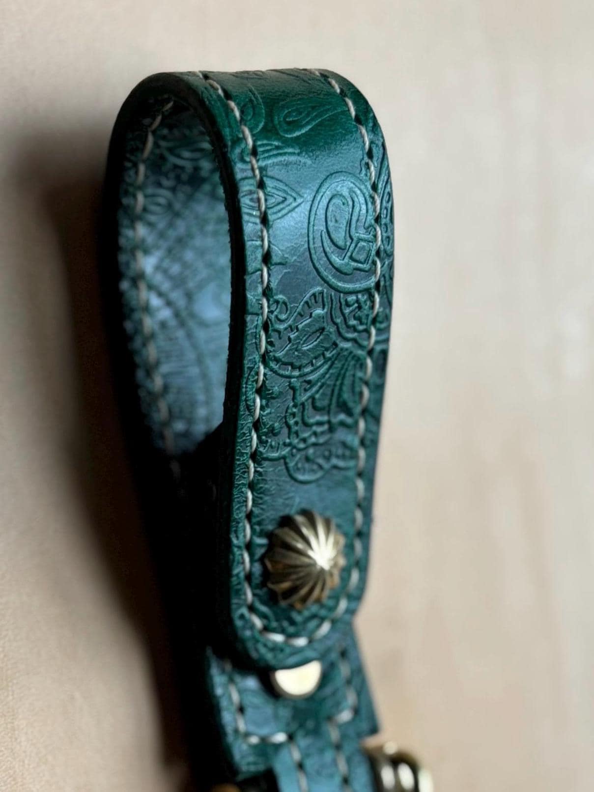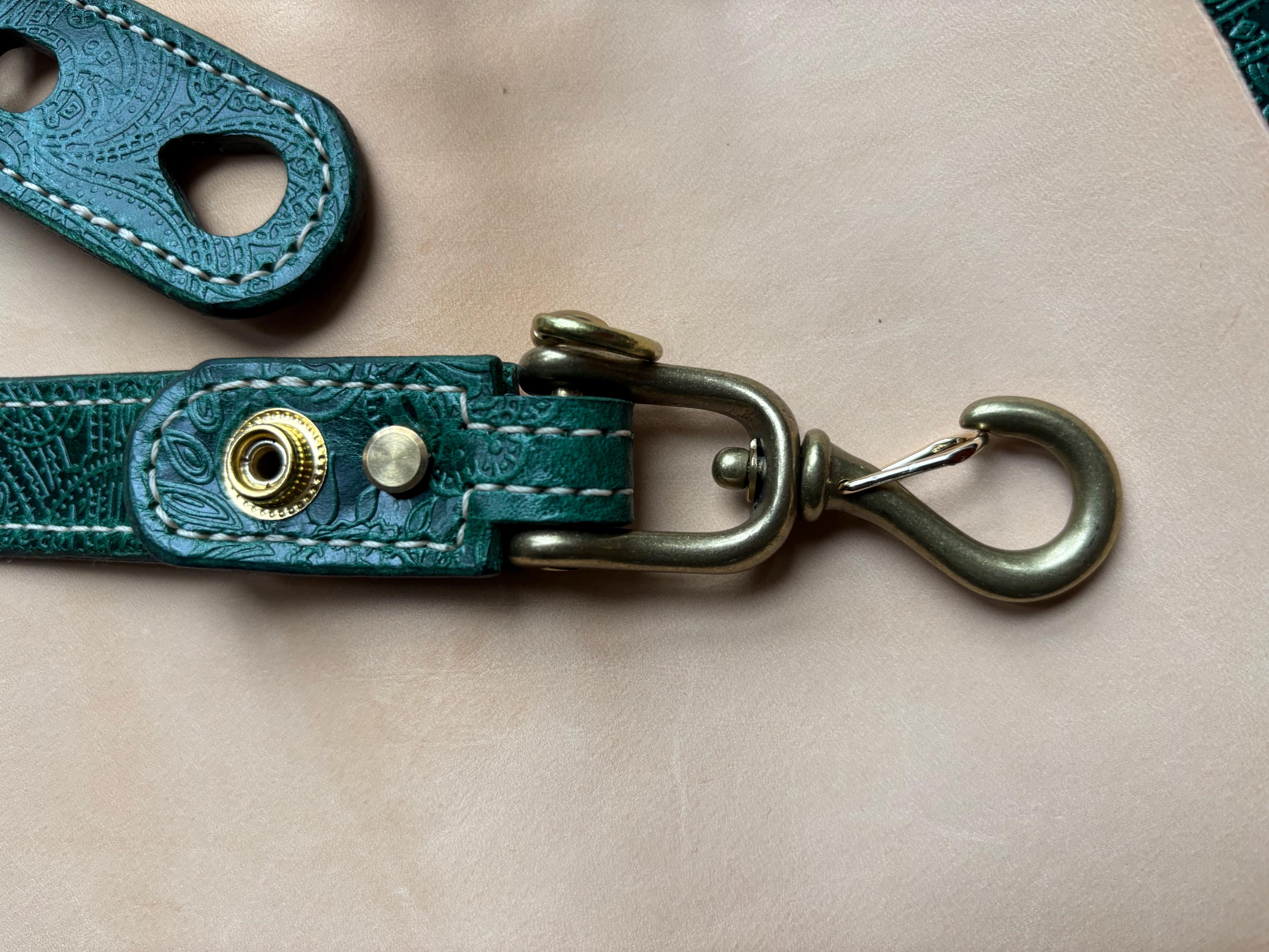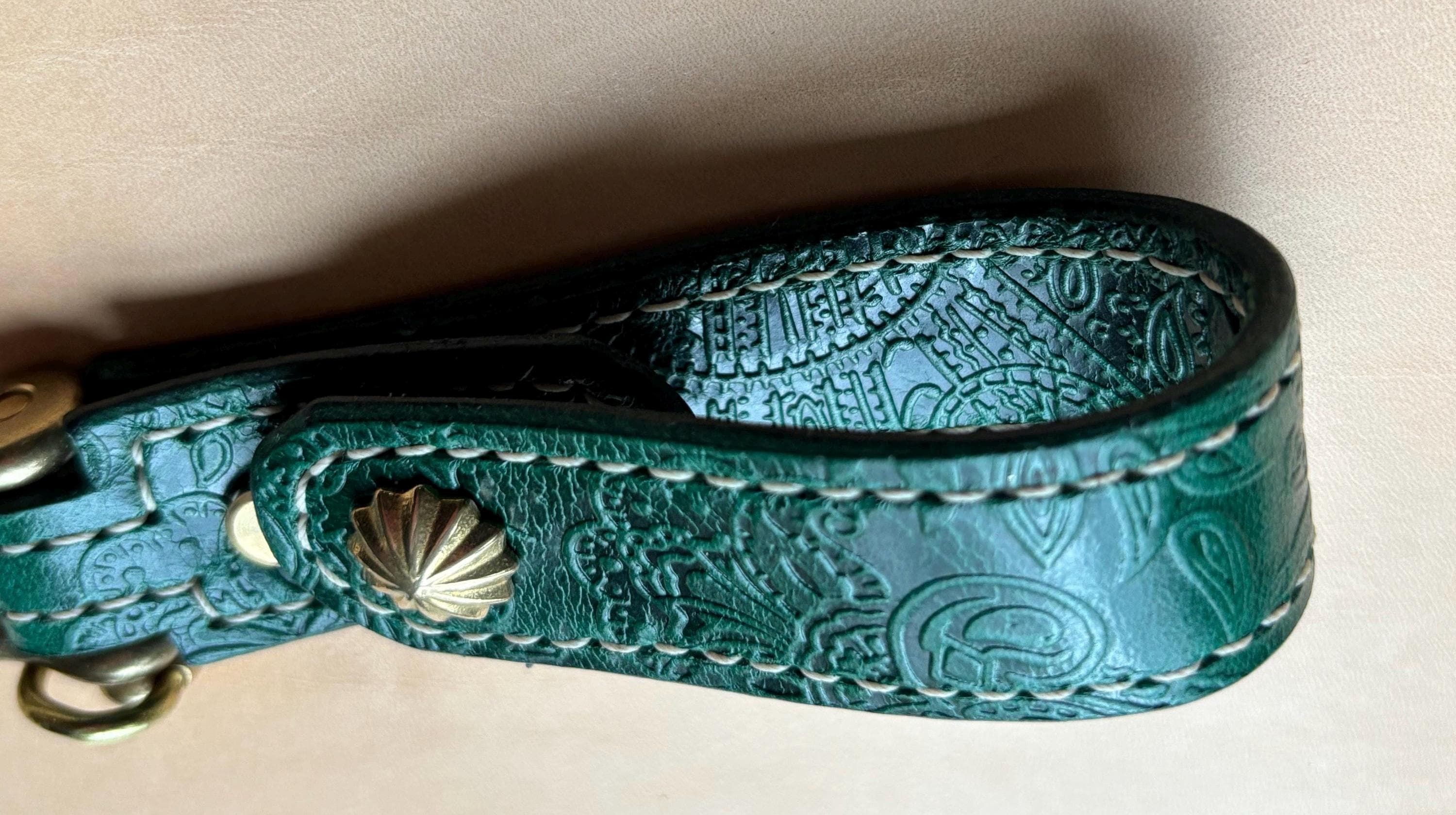 Two layers of premium leather are carefully glued and stitched together, ensuring exceptional strength and durability. Finished with solid brass hardware and a decorative antique brass concho, this piece combines timeless craftsmanship with everyday functionality.