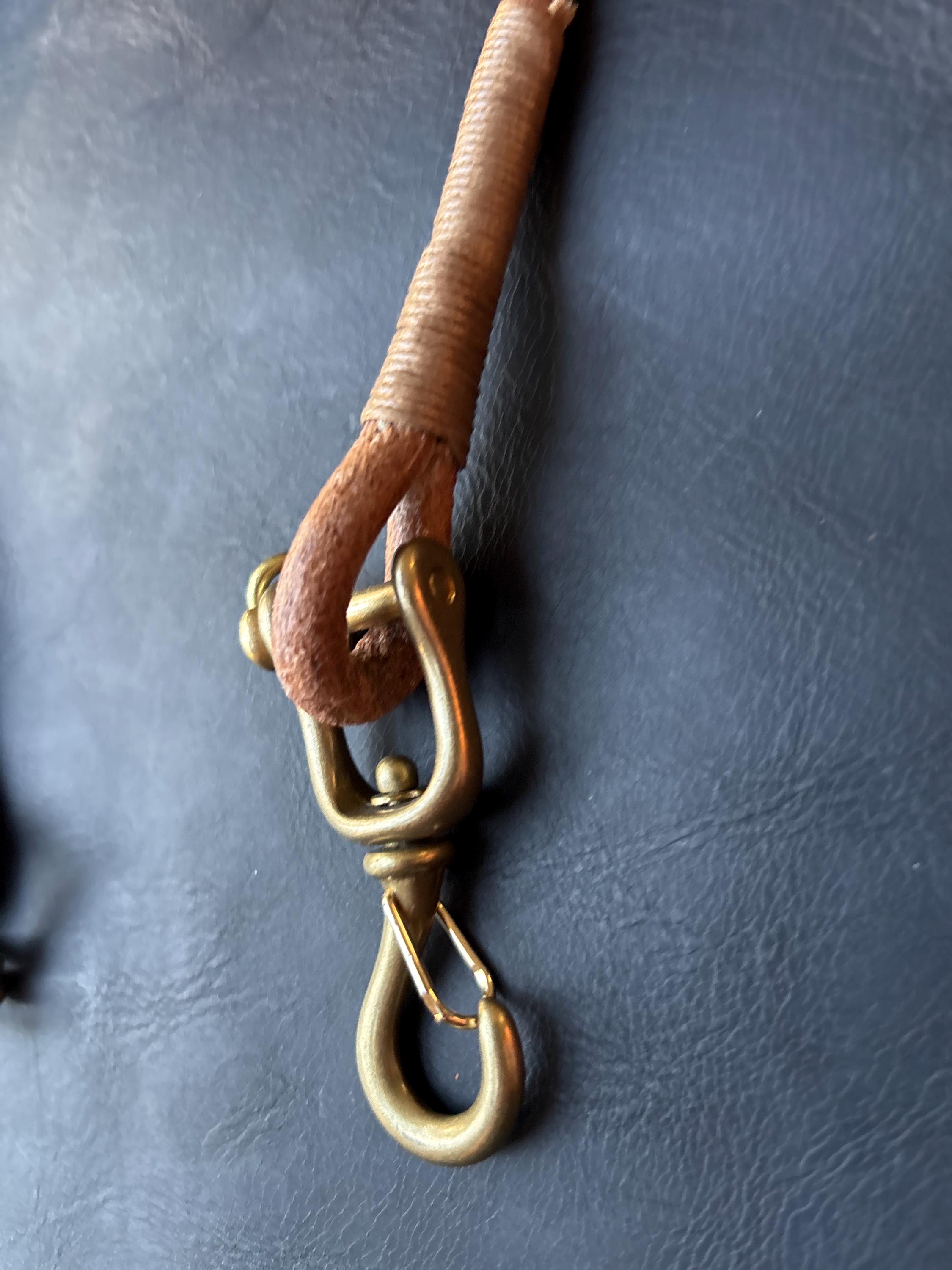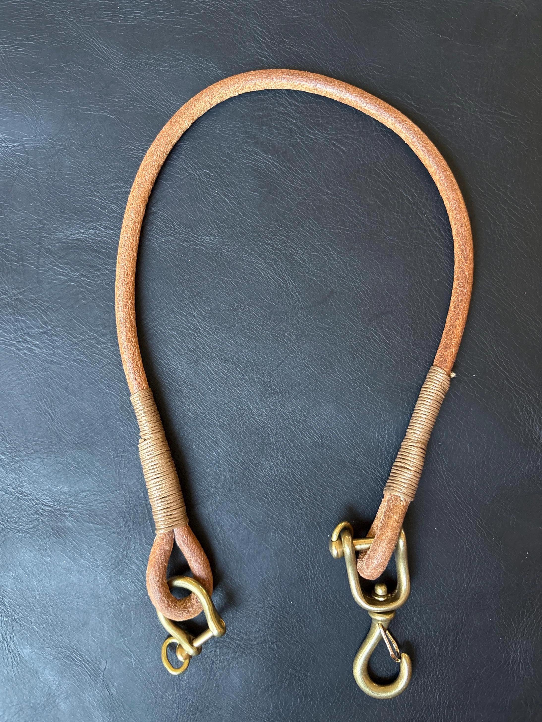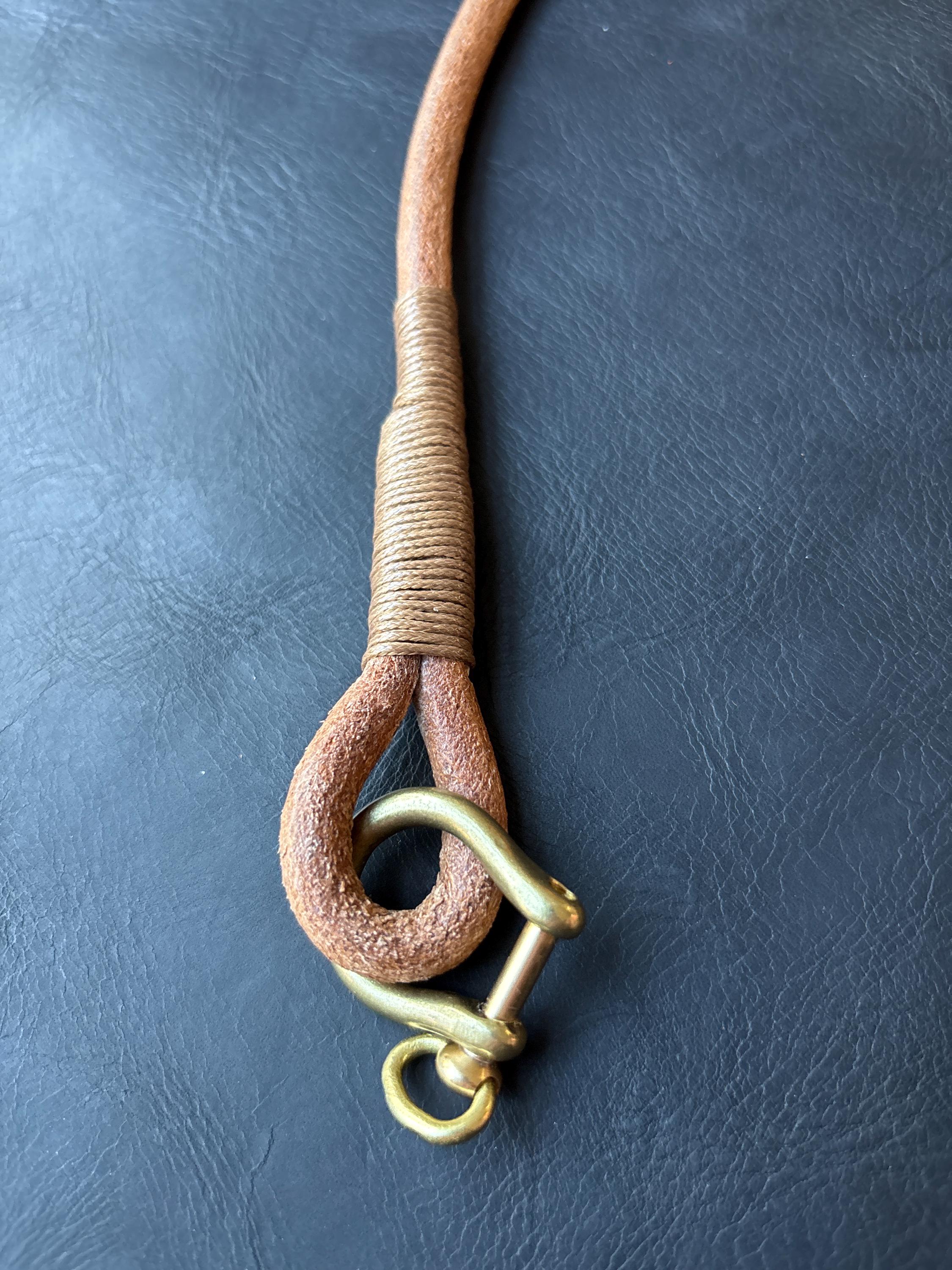 Handmade round leather rope lanyard with Japanese Solid Brass Swivel Hook Snap.