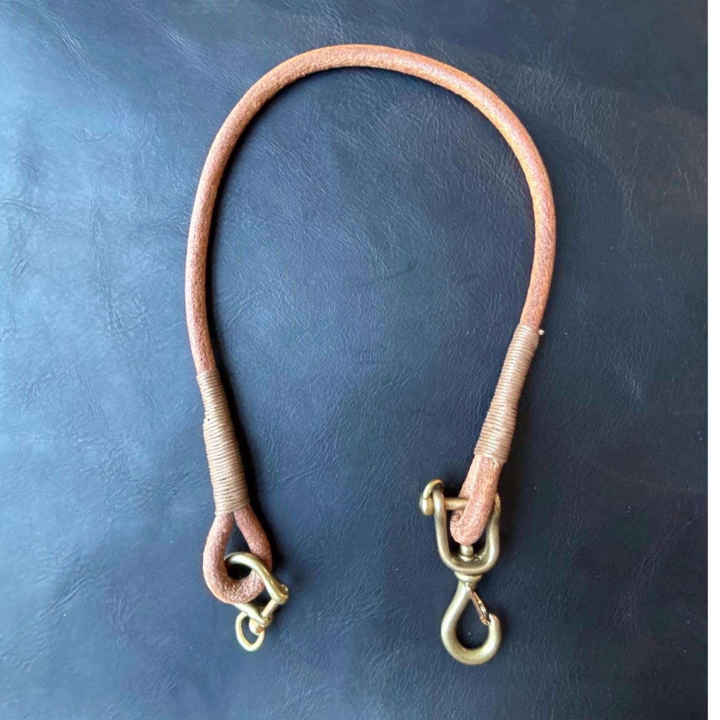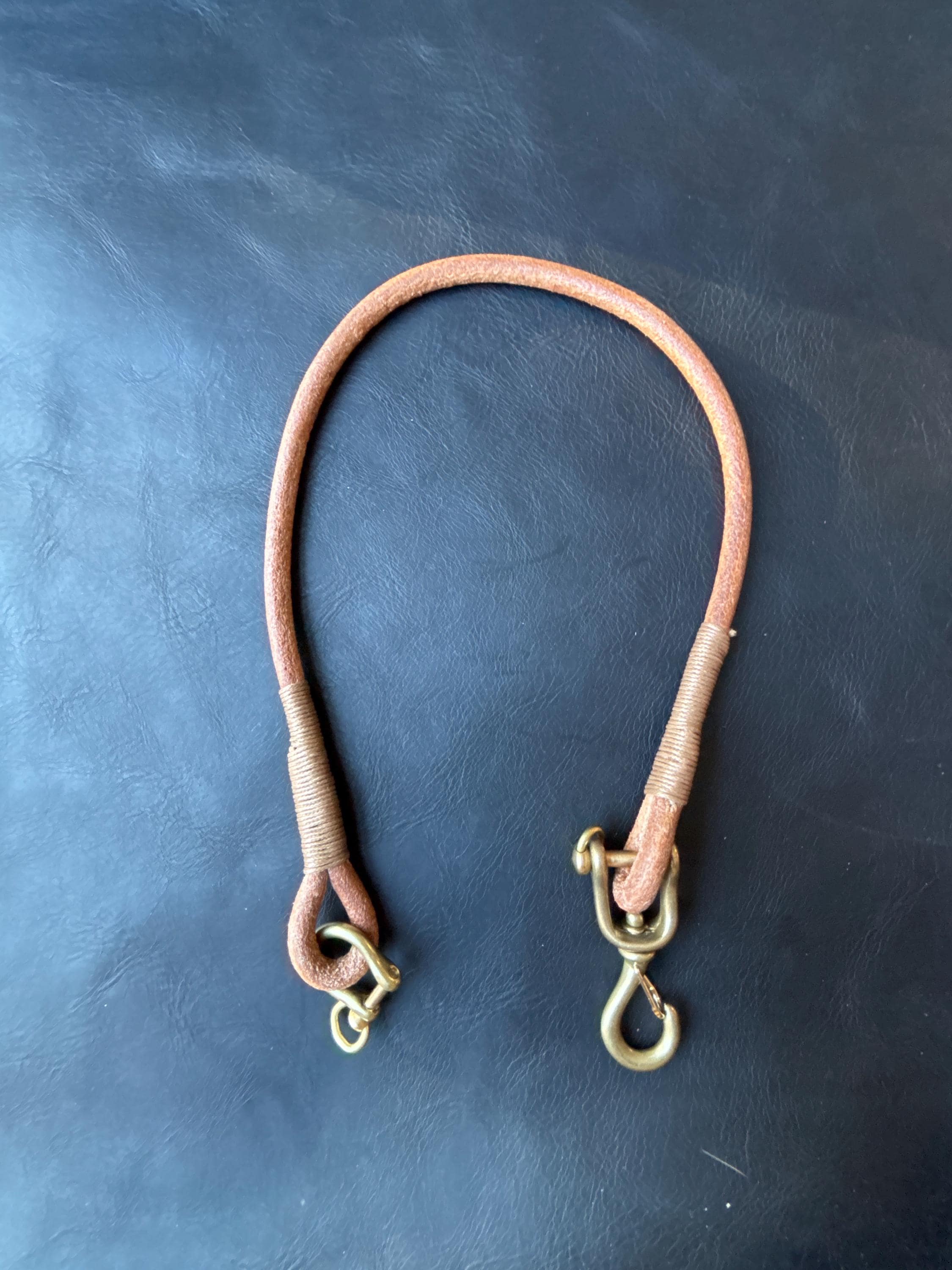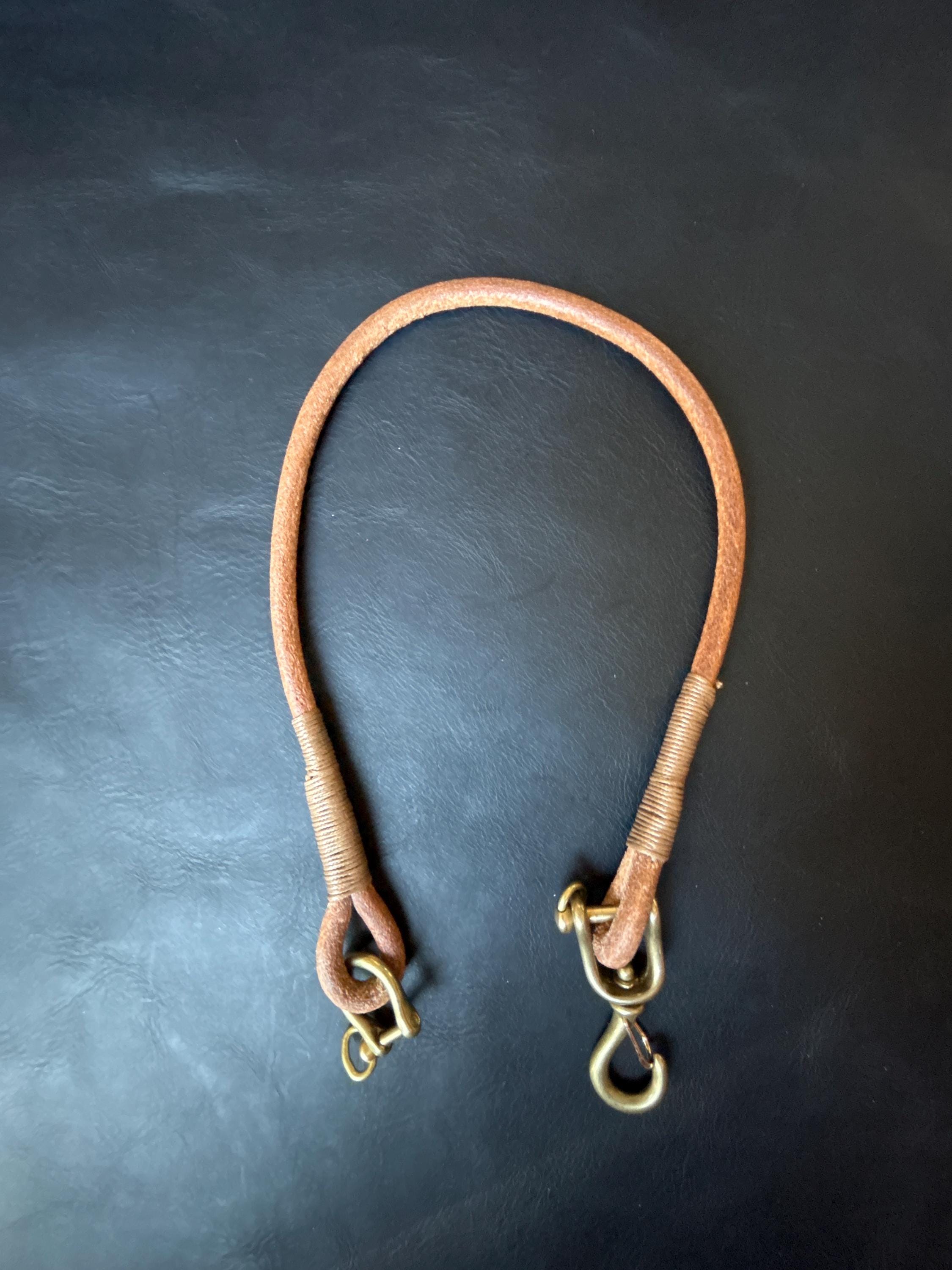 Handmade round leather rope lanyard with Japanese Solid Brass Swivel Hook Snap.