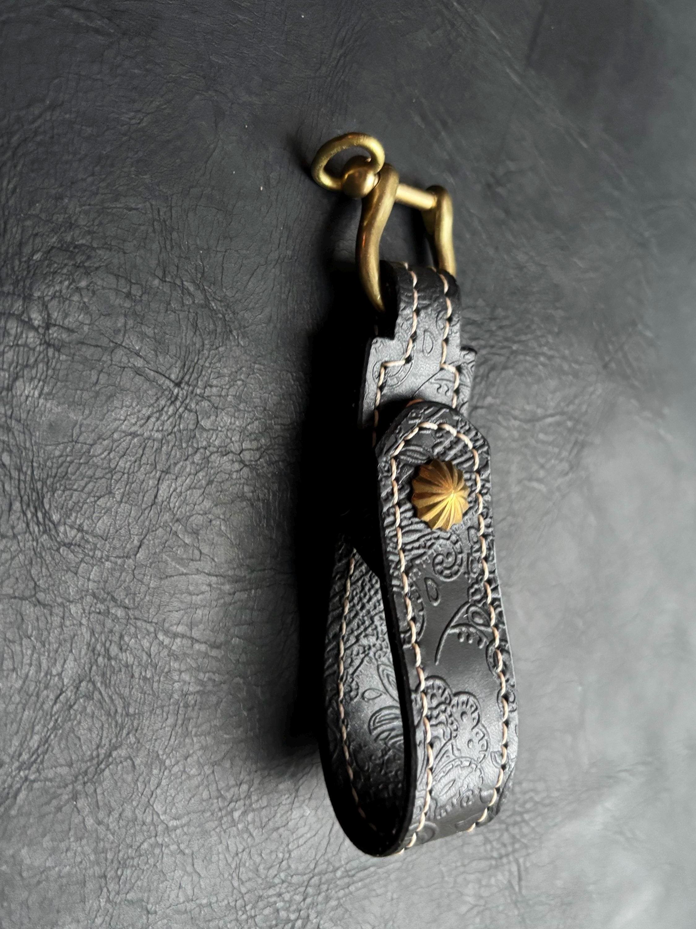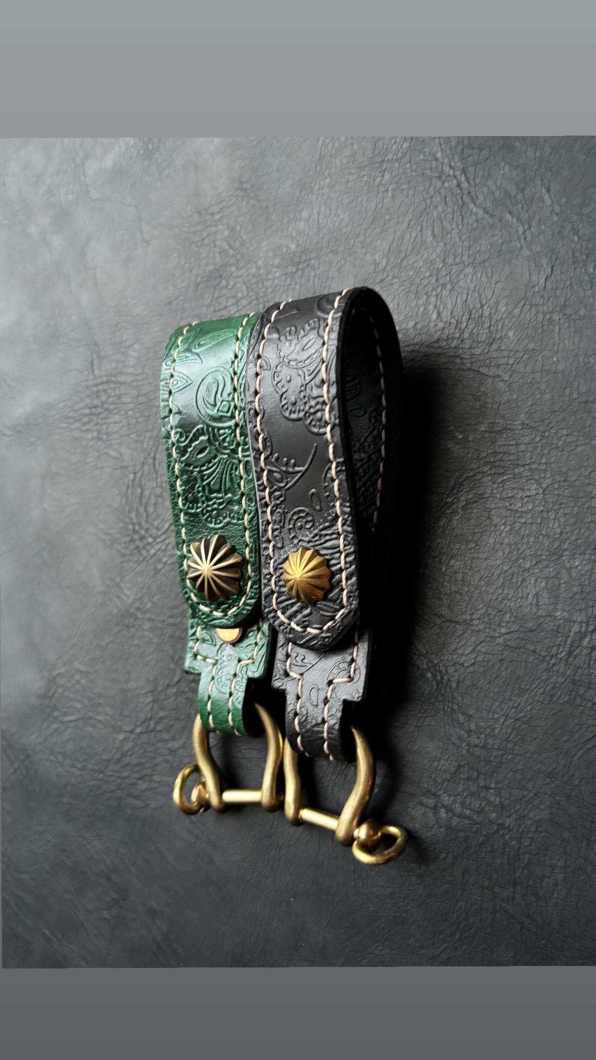 Handcrafted Leather Belt Loop Key Ring holder made using premium Italian Full Grain Leatheather equipped with JAPANESE SOLID BRASS , a fully vegetable-tanned leather from Conceria La Perla Azzurra, Italy,