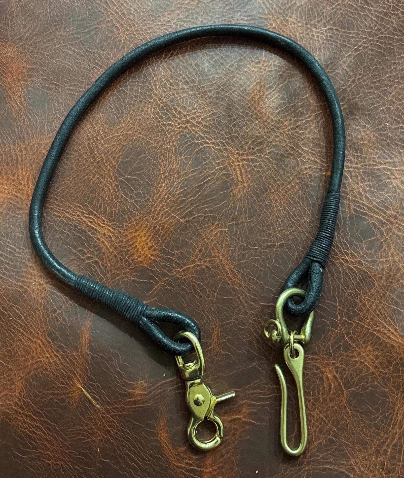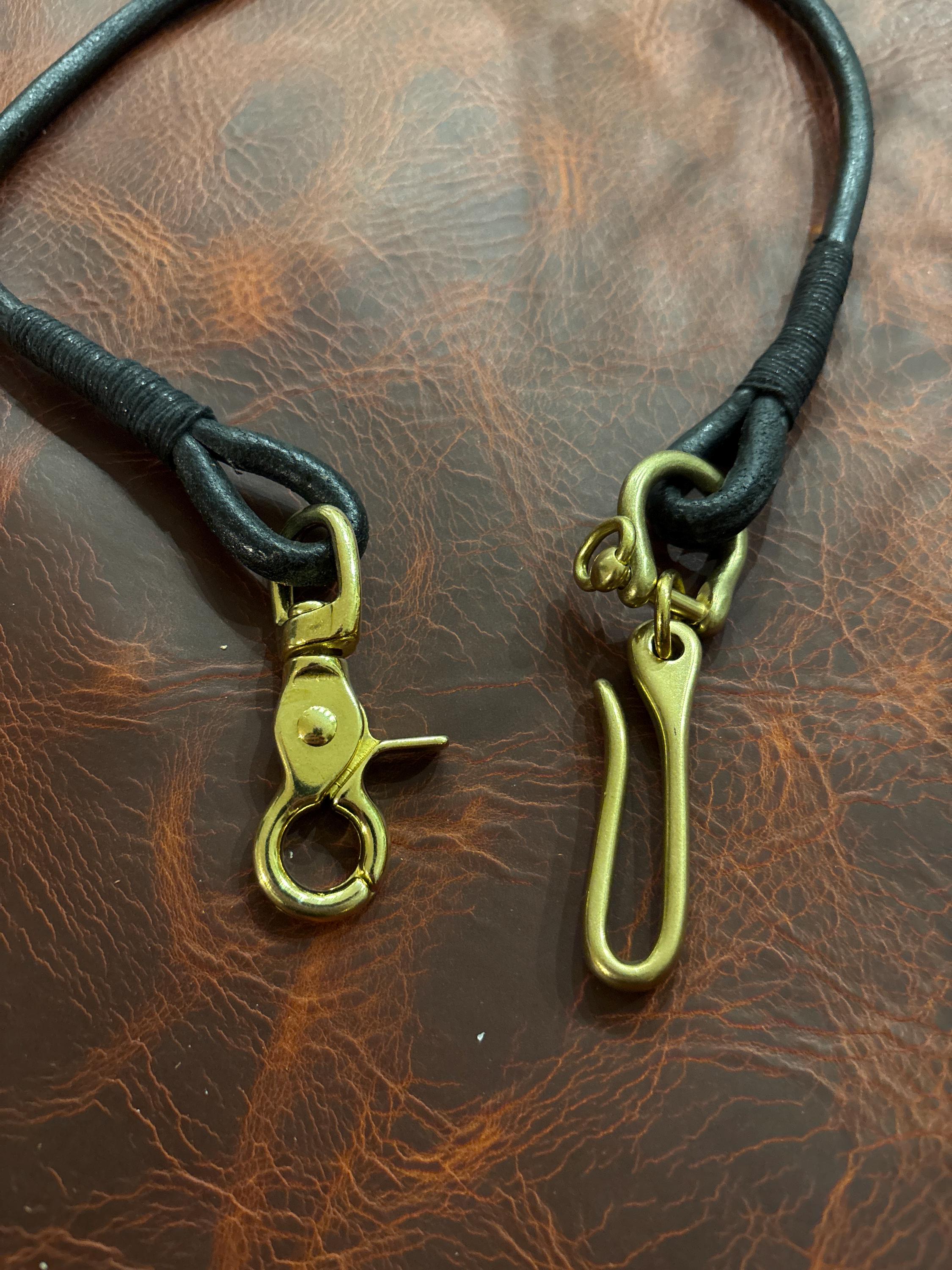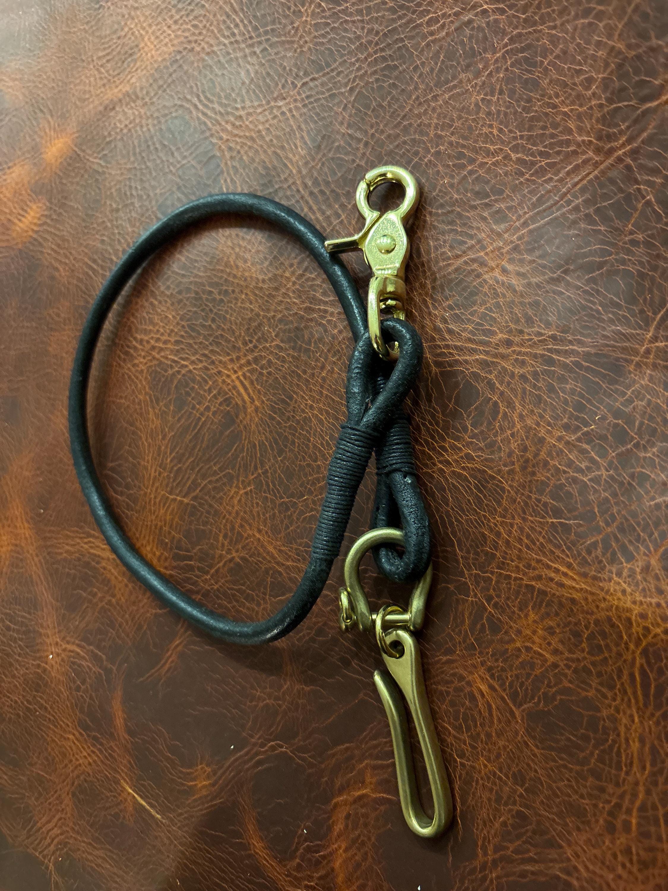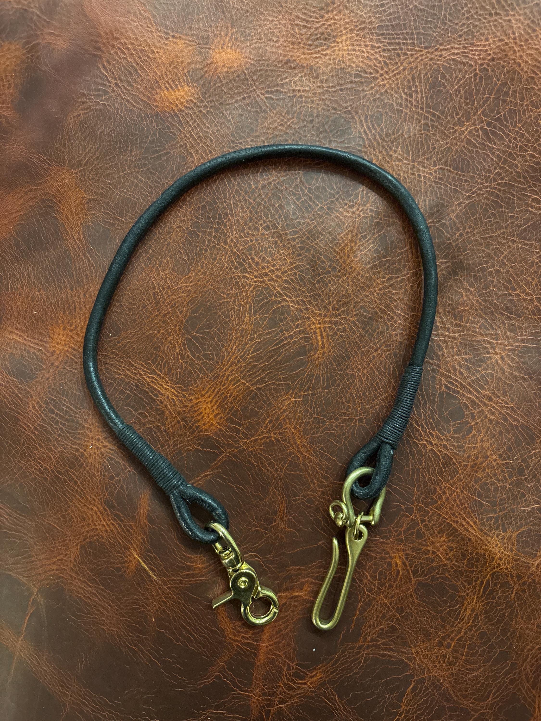 Handmade black round Leather Lanyard with Solid Brass Trigger Snap and belt hook for Leather Chain Wallet