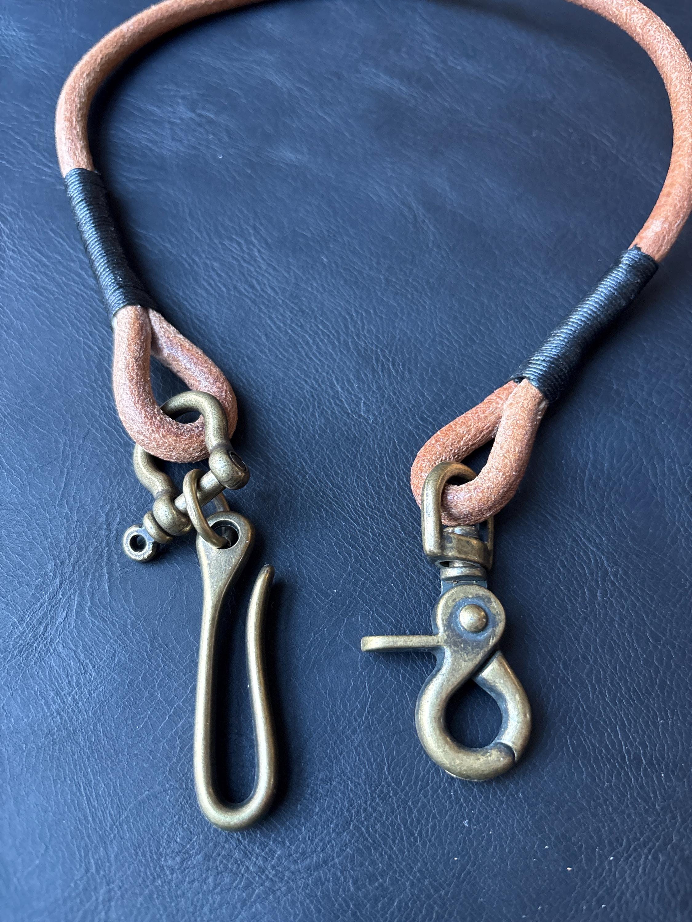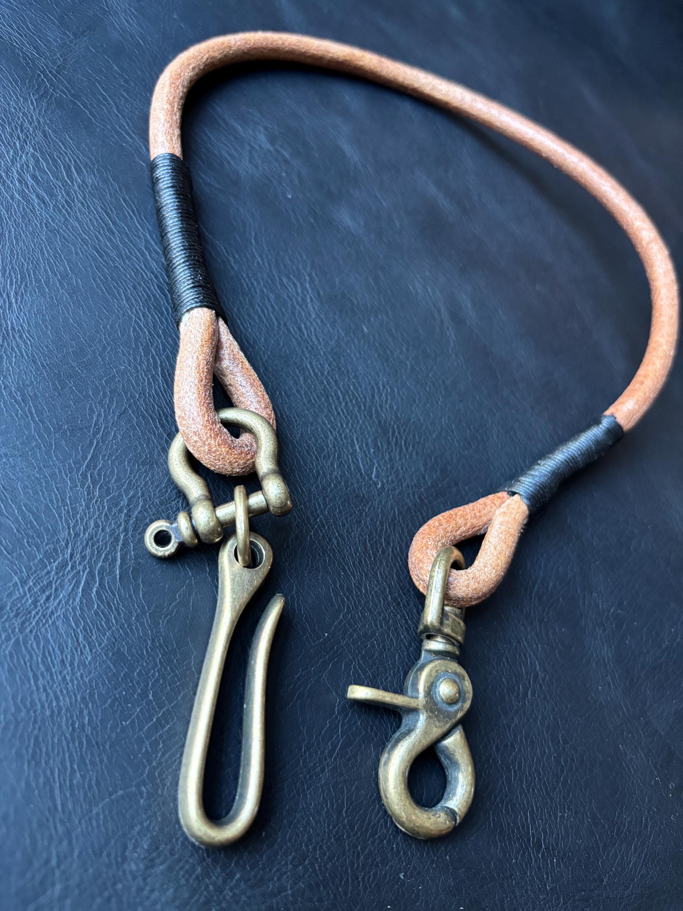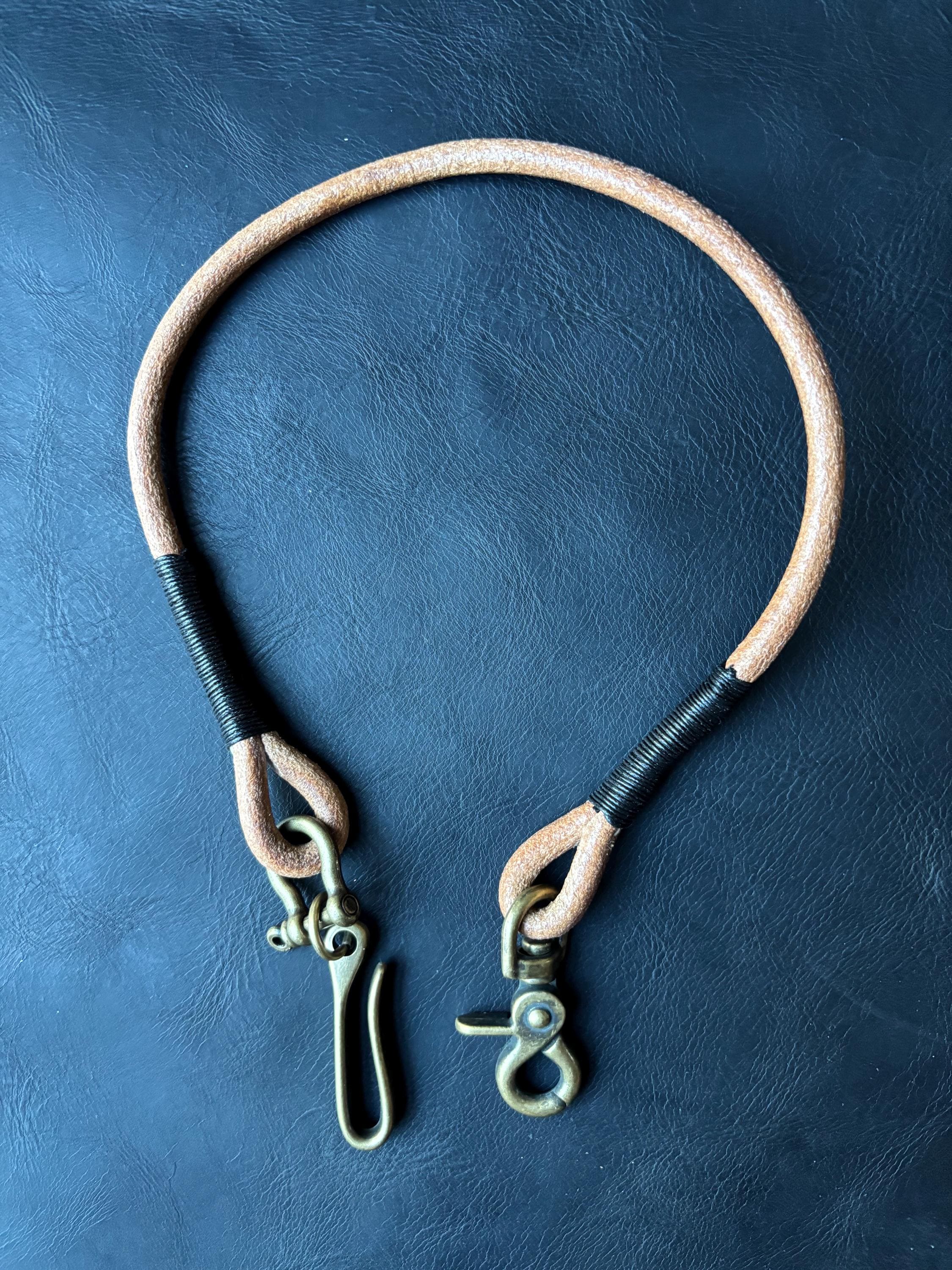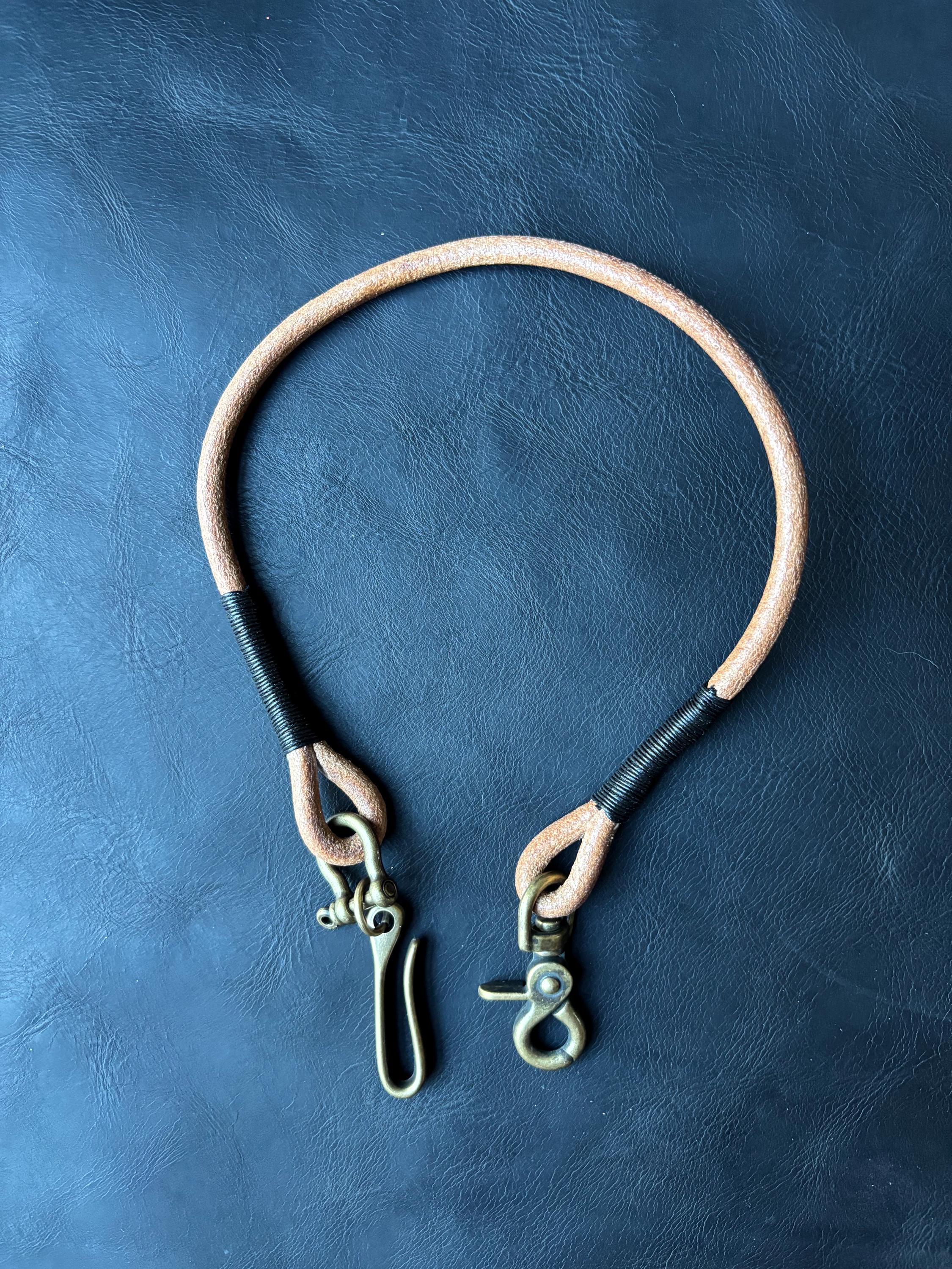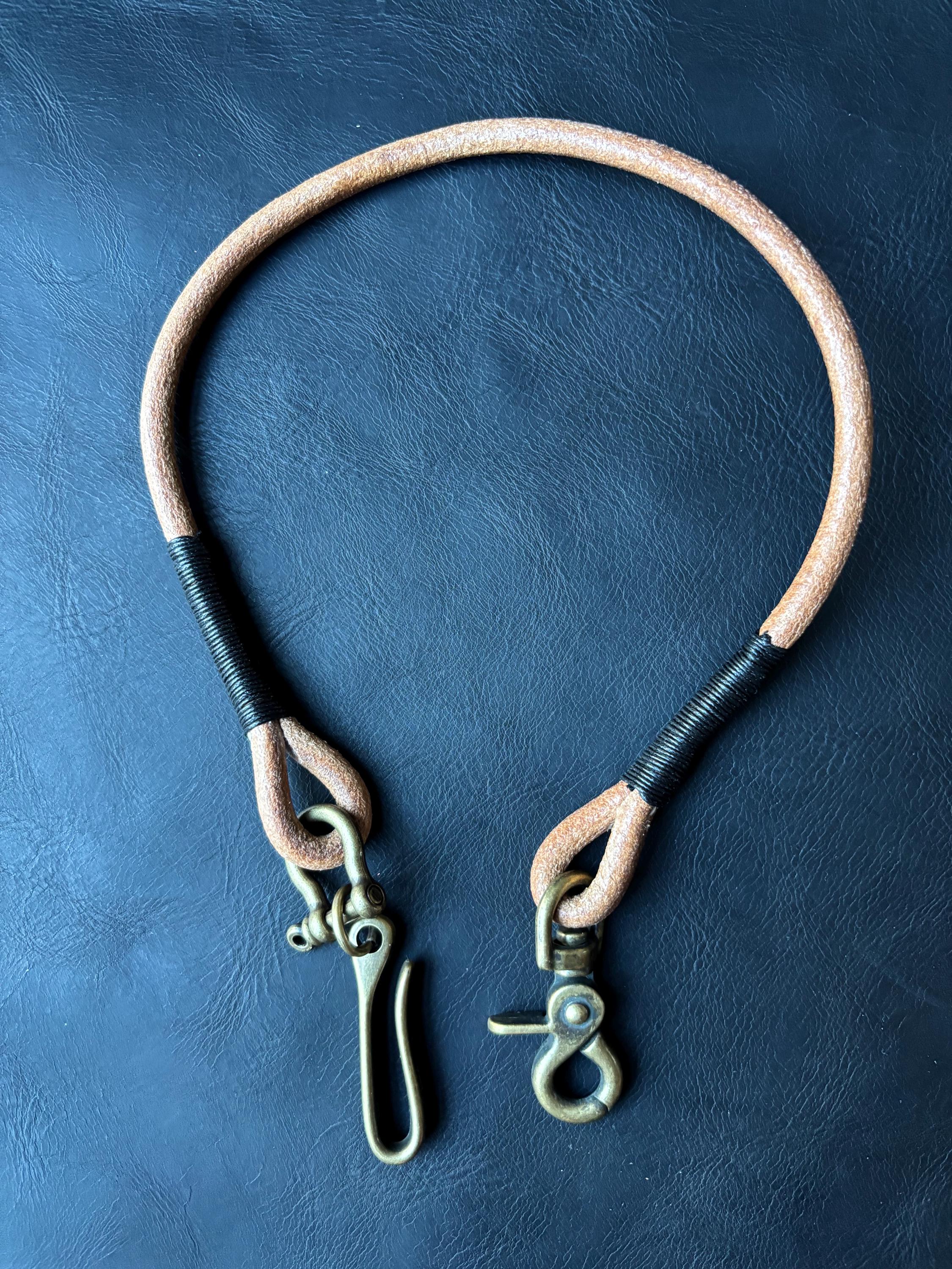 Round leather lanyard with solid brass belt hook for Leather Chain Wallet.