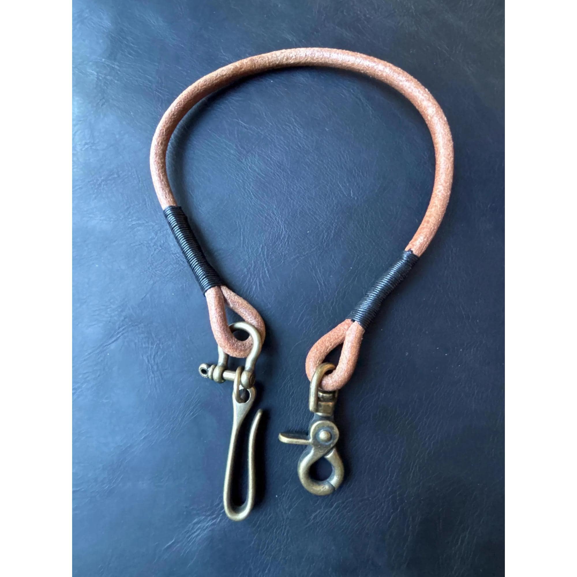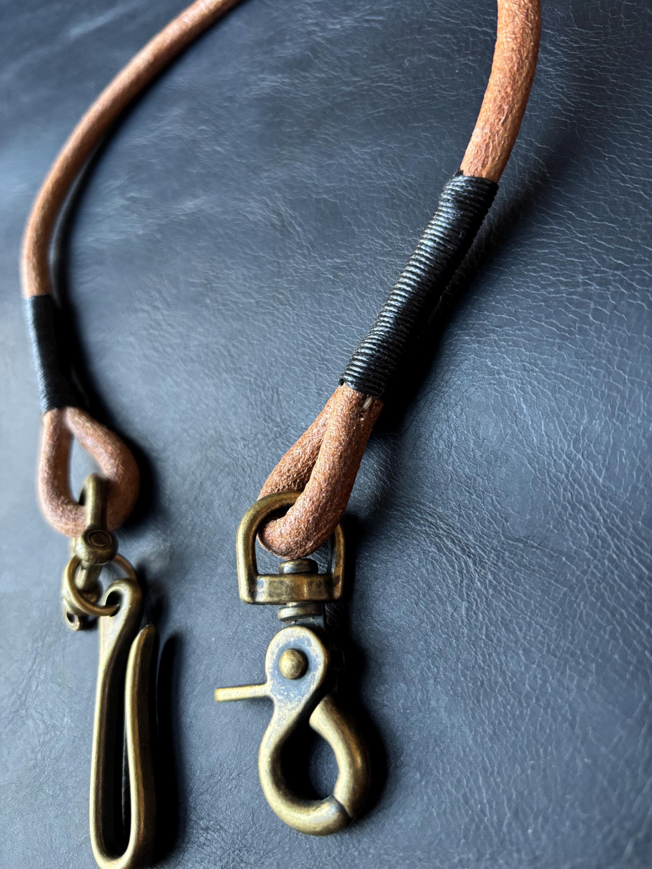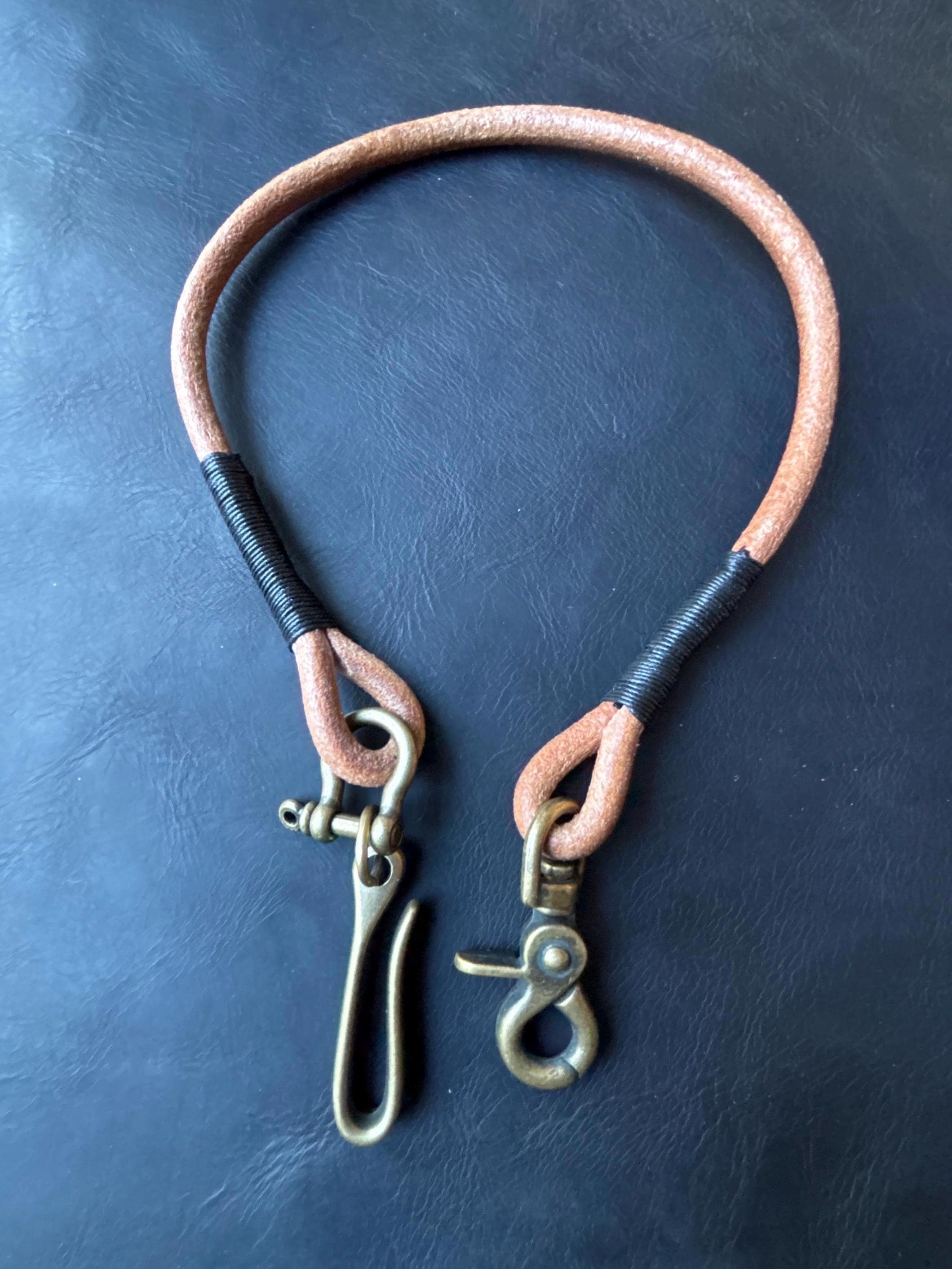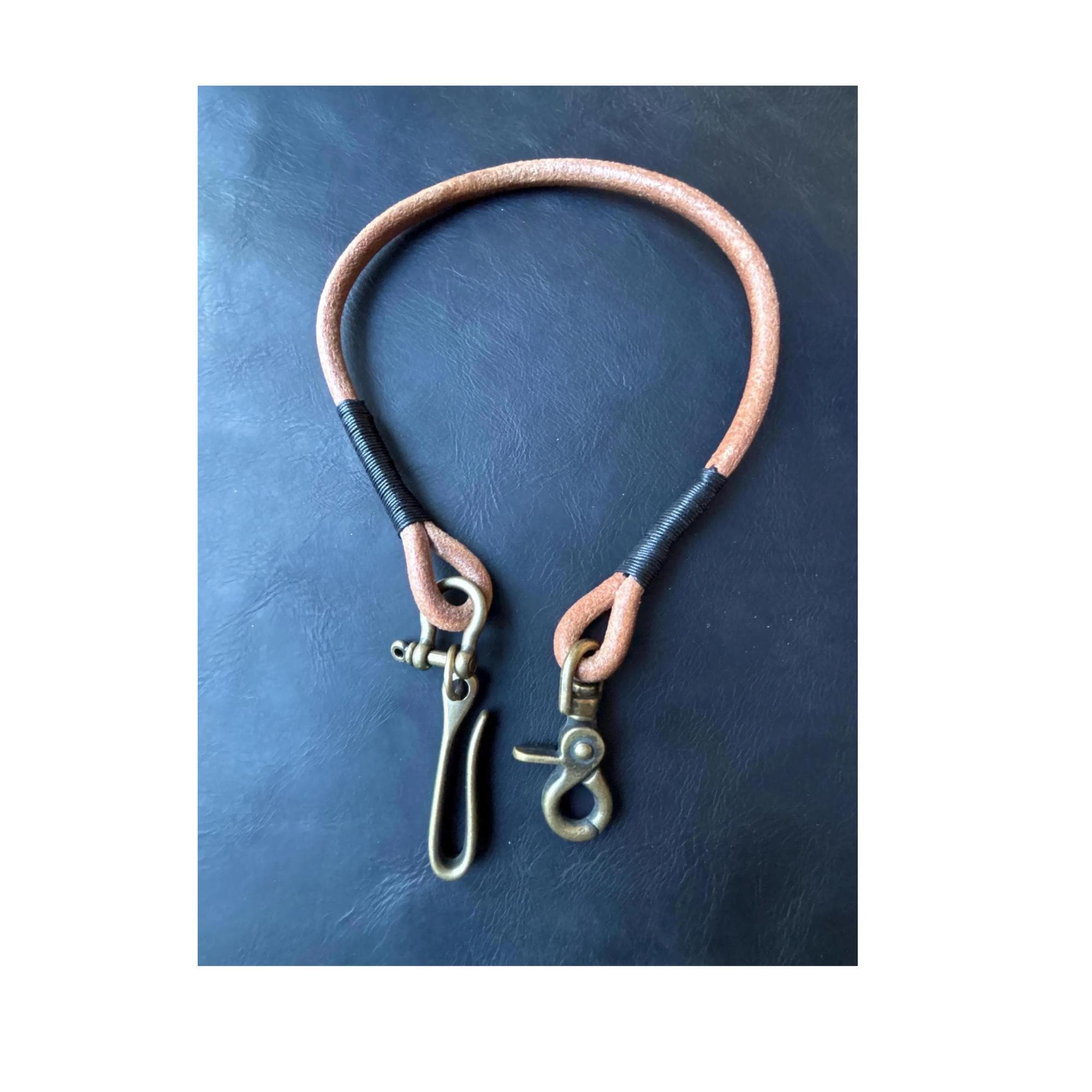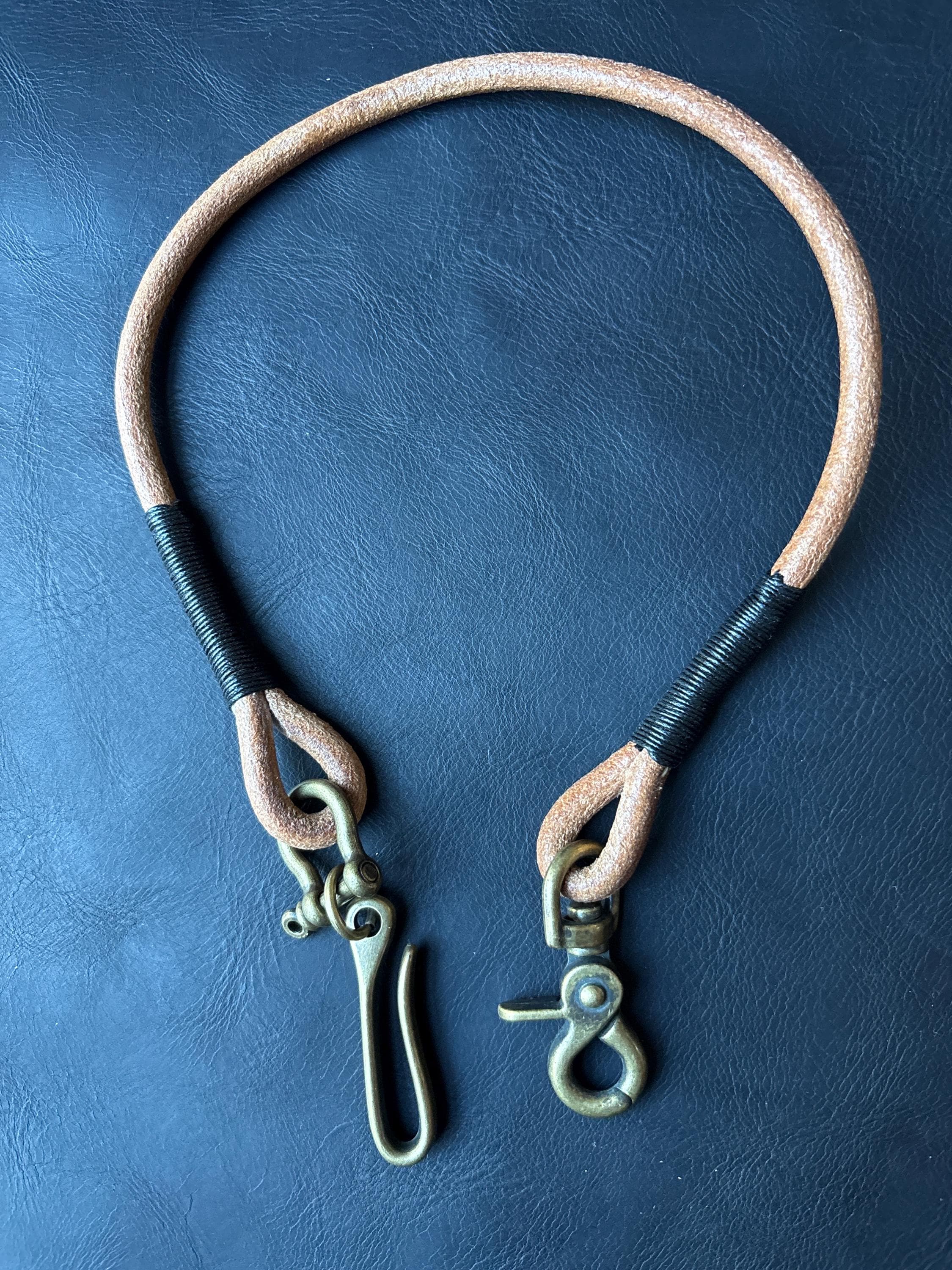 Round leather lanyard with solid brass belt hook for Leather Chain Wallet.
