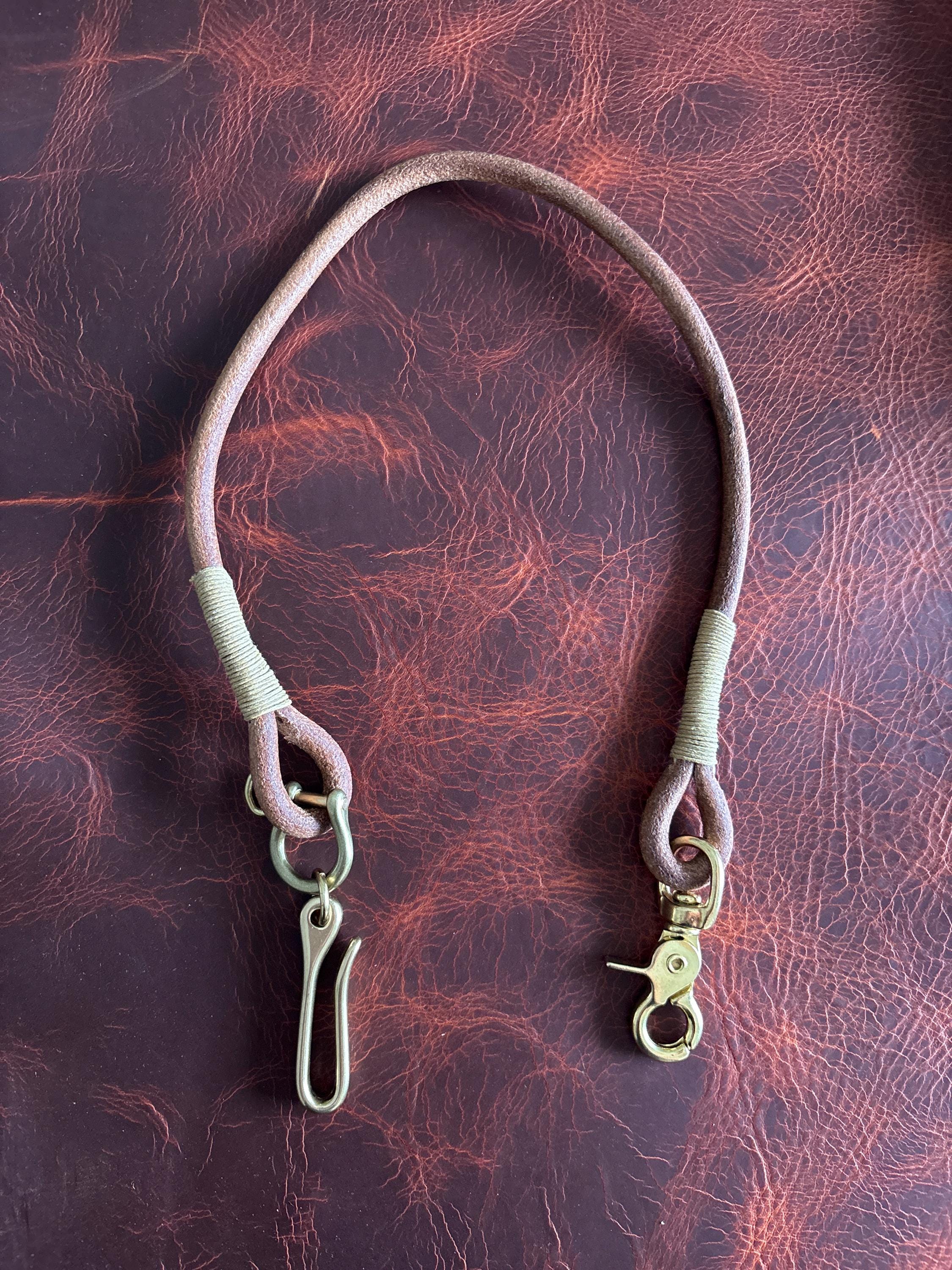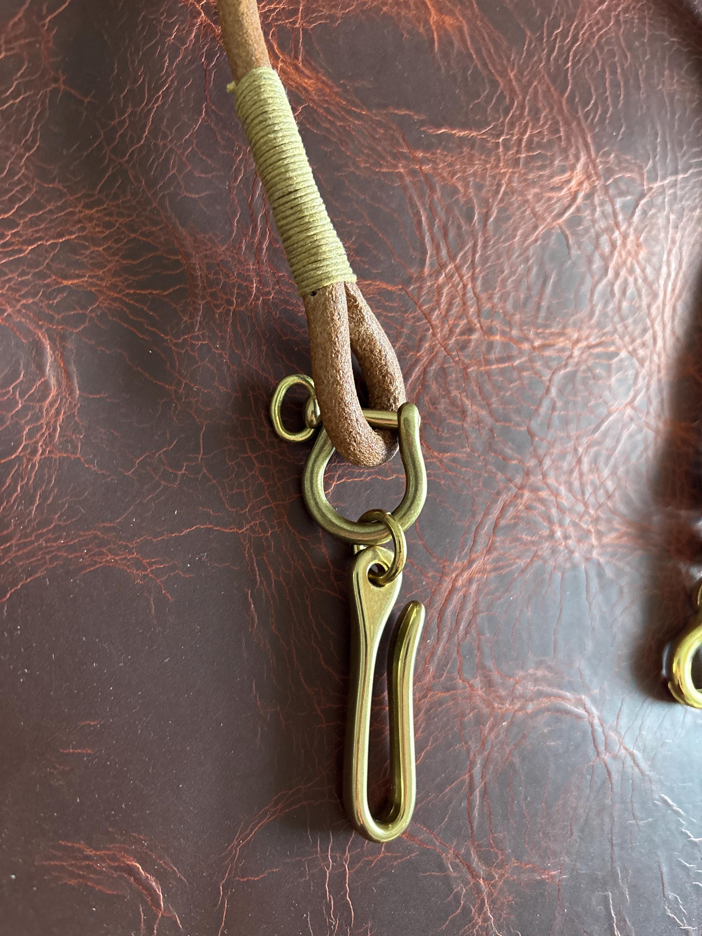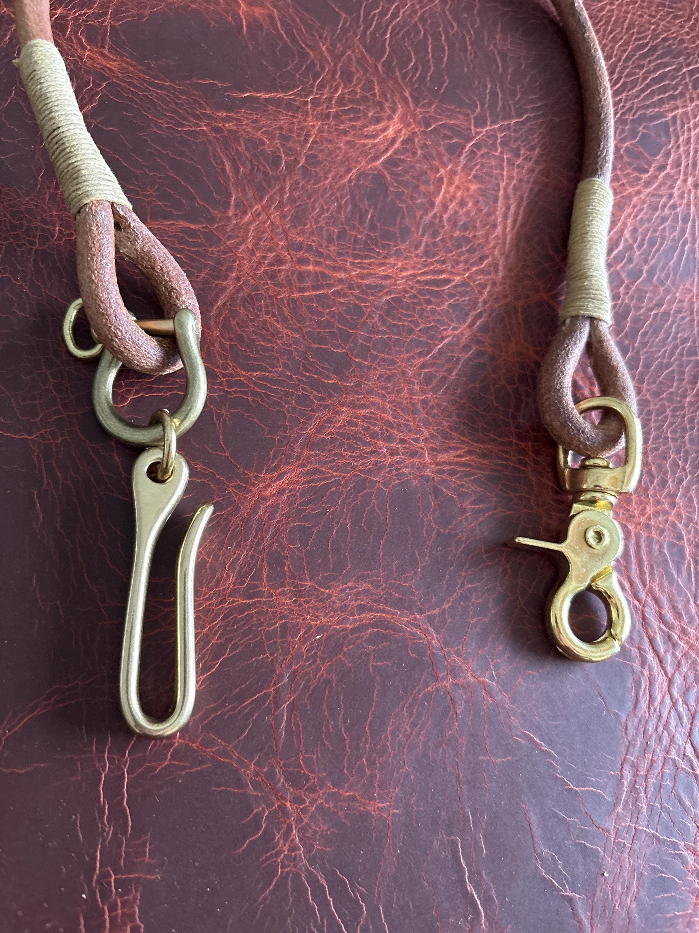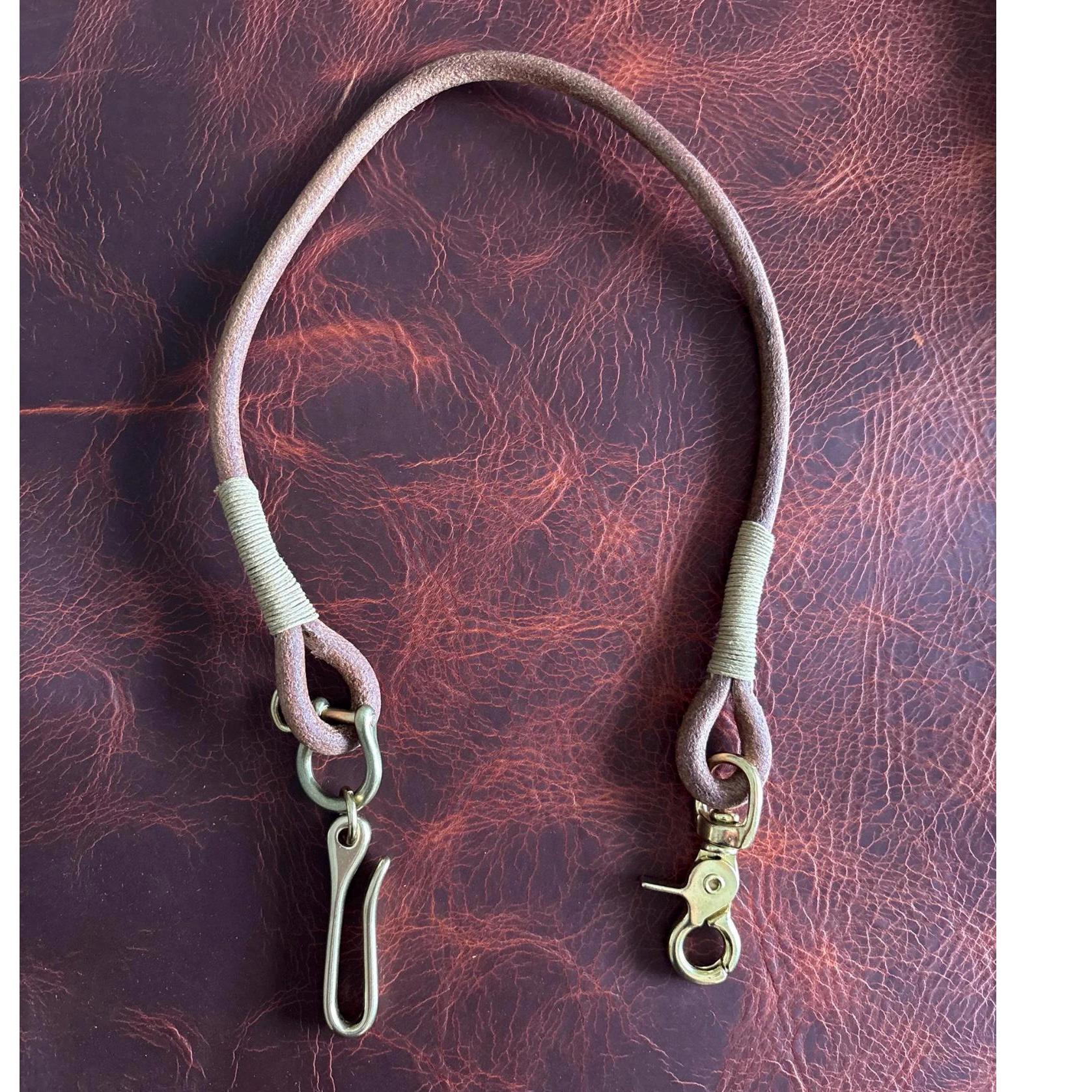 Handmade 8 mm Round Leather Lanyard with Solid Brass Trigger Snap and belt fish hook.