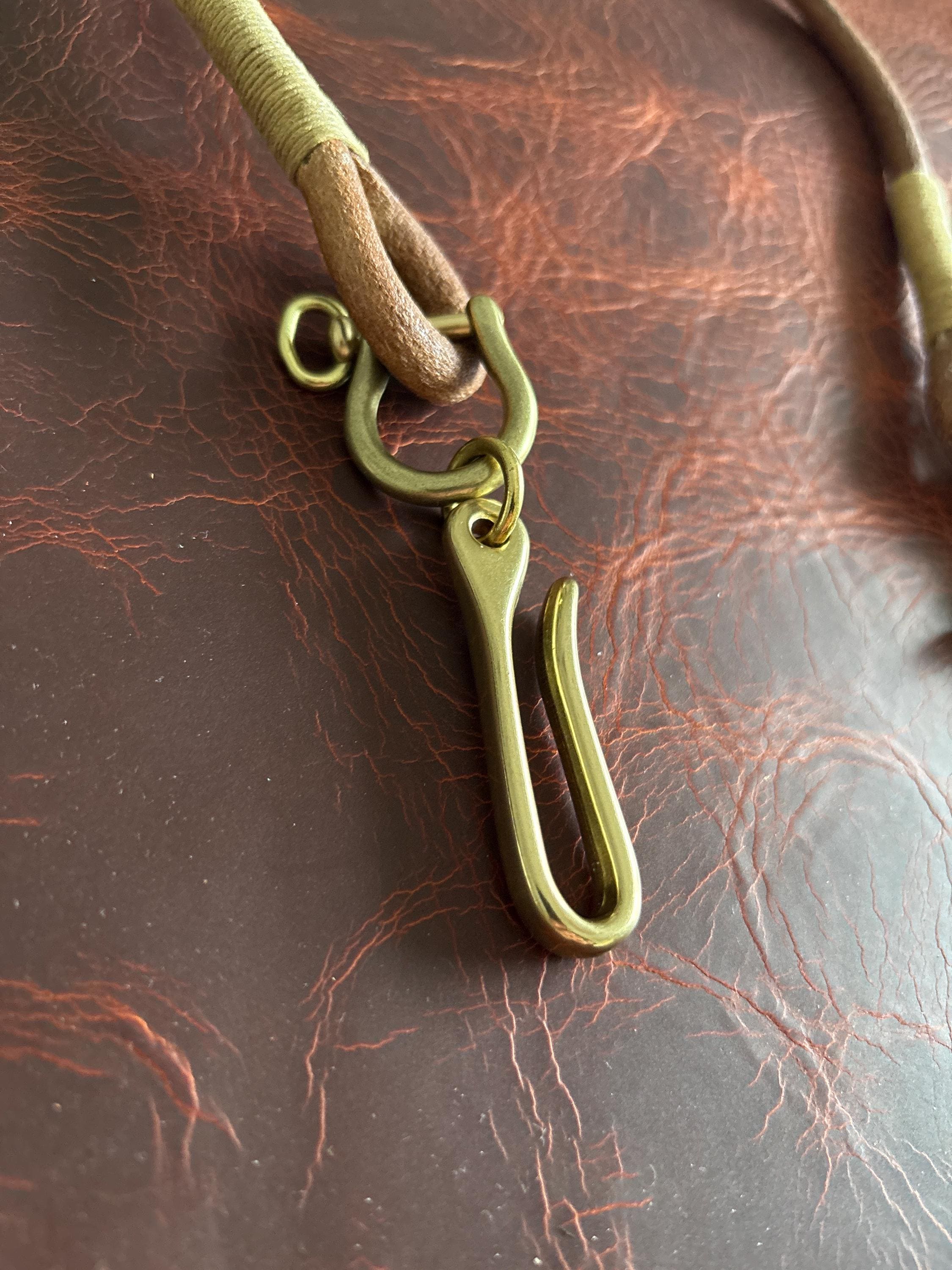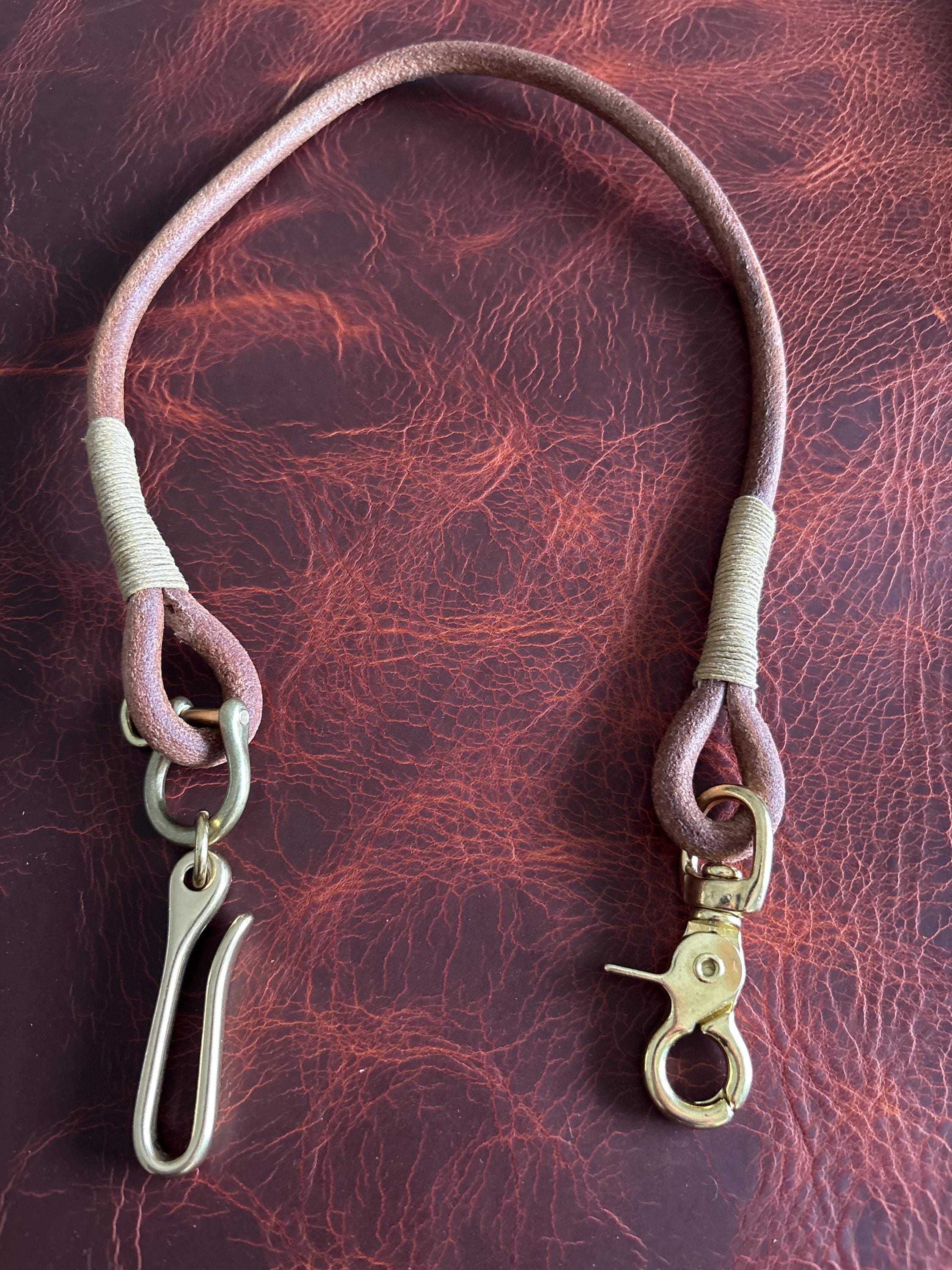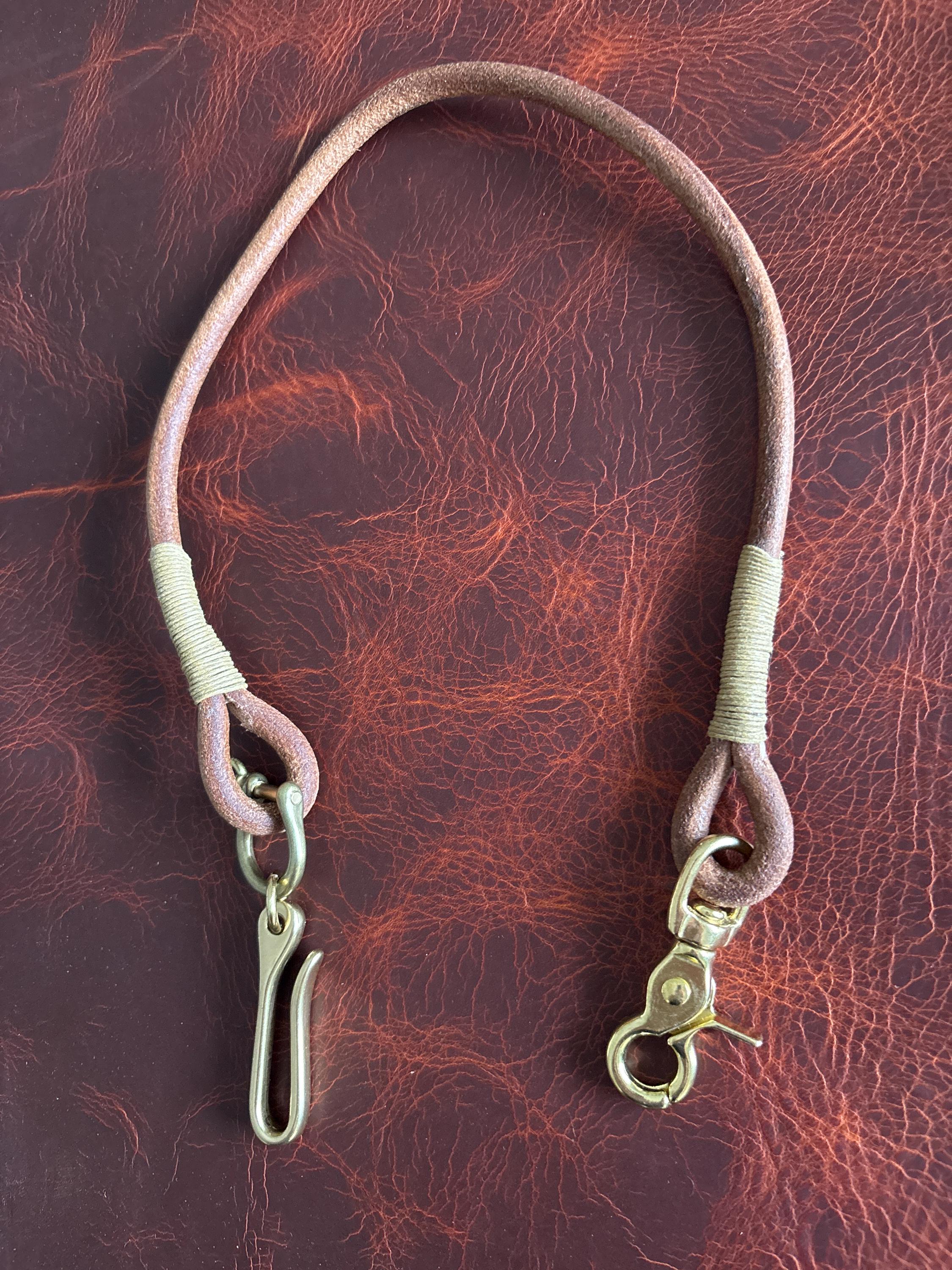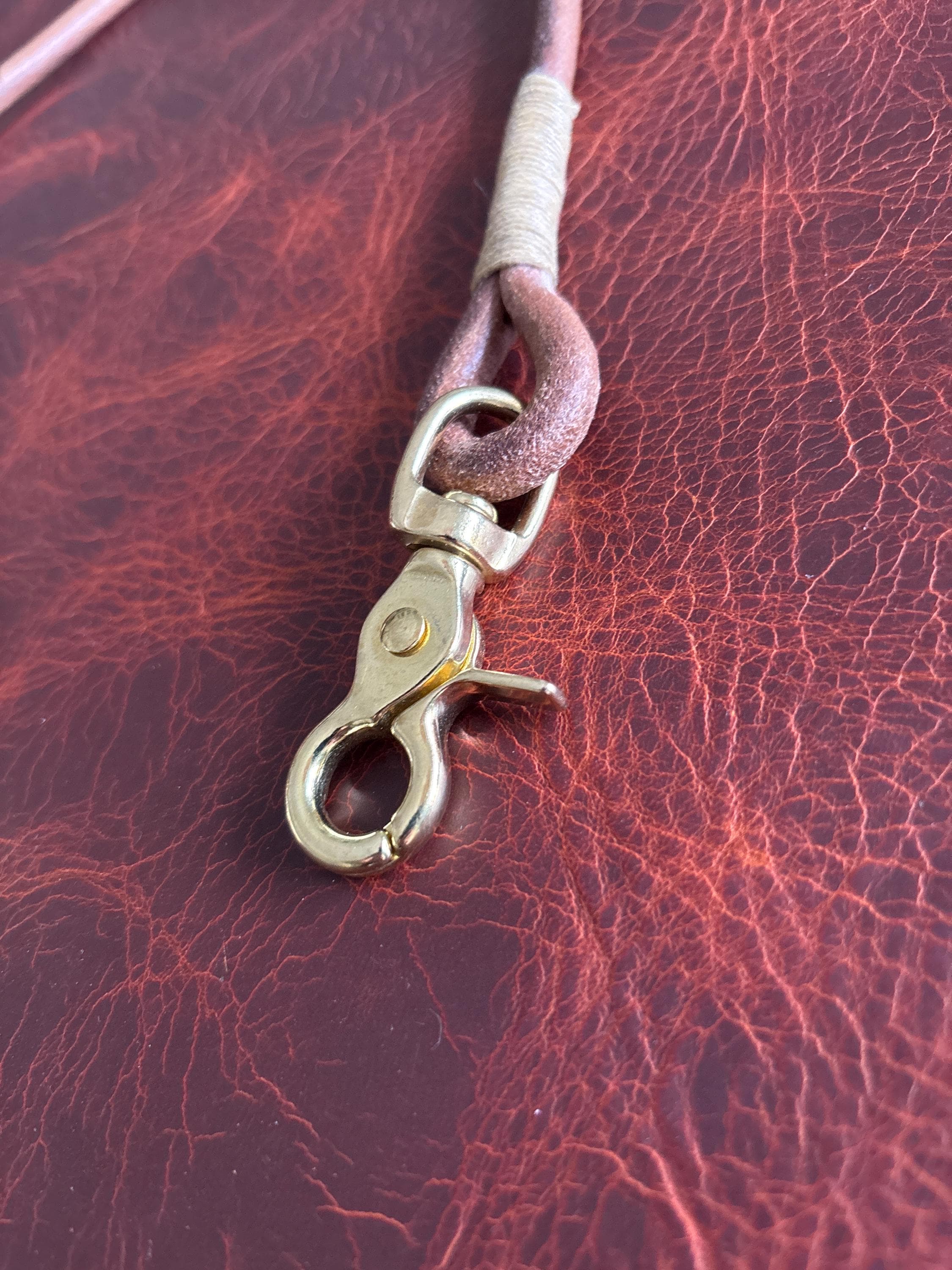 Handmade 8 mm Round Leather Lanyard with Solid Brass Trigger Snap and belt fish hook.