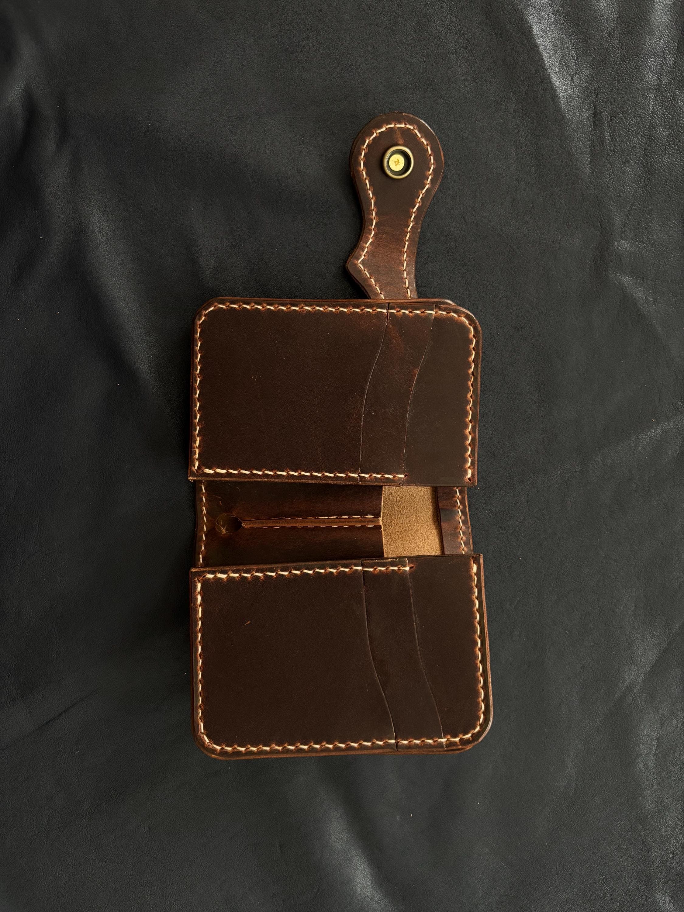 • The closure is secured by a brass snaps, ensuring everything stays in place..