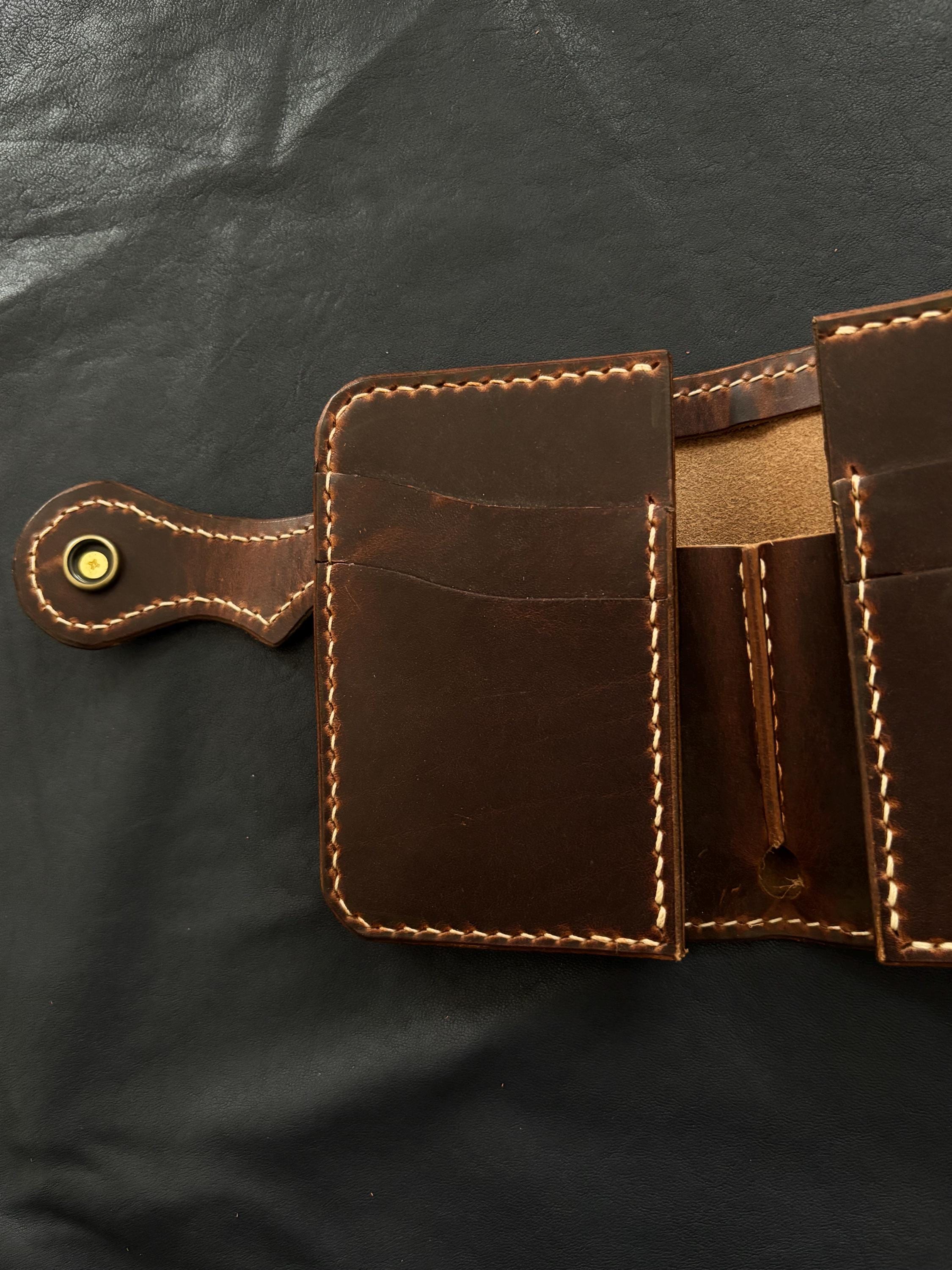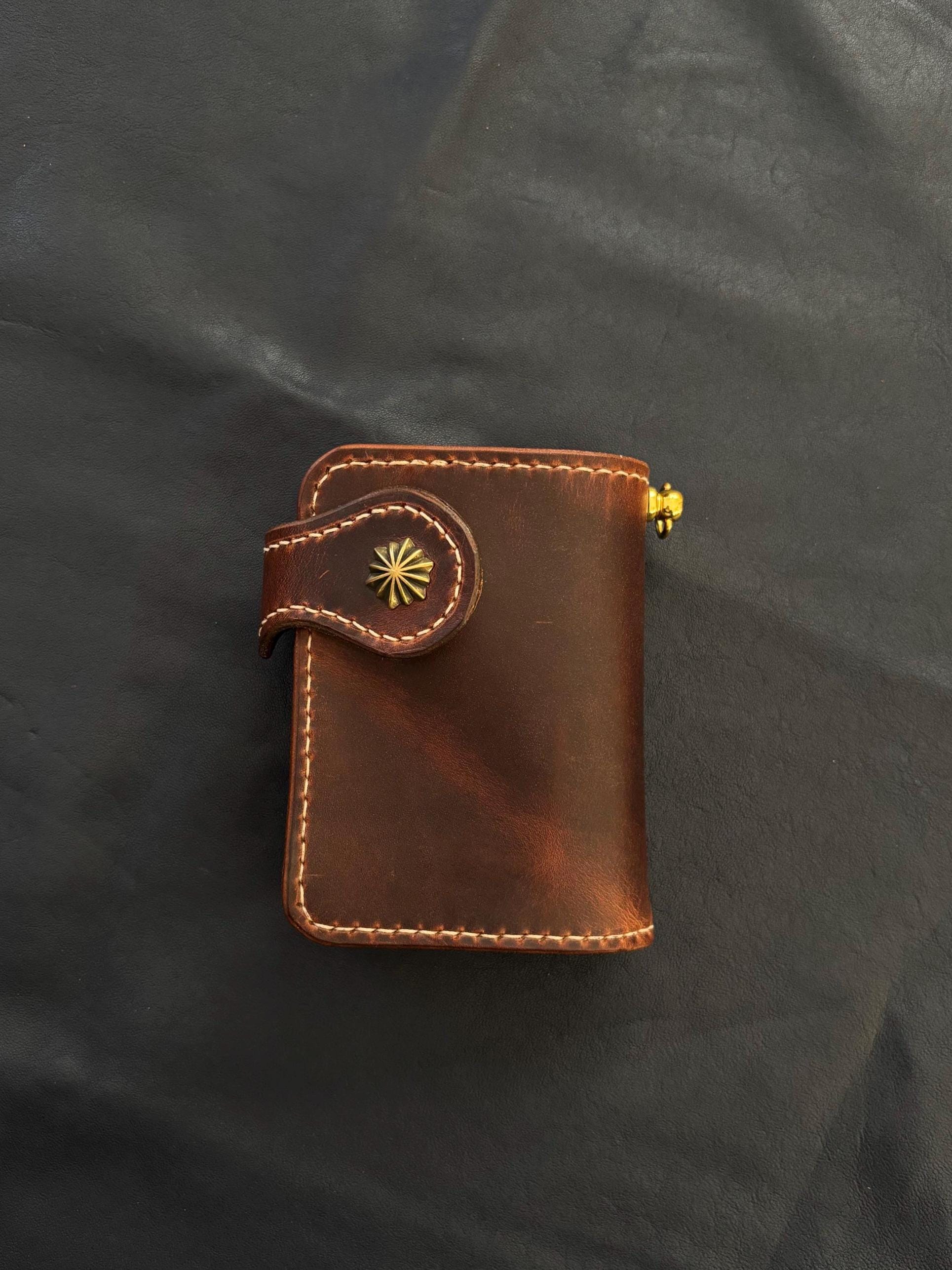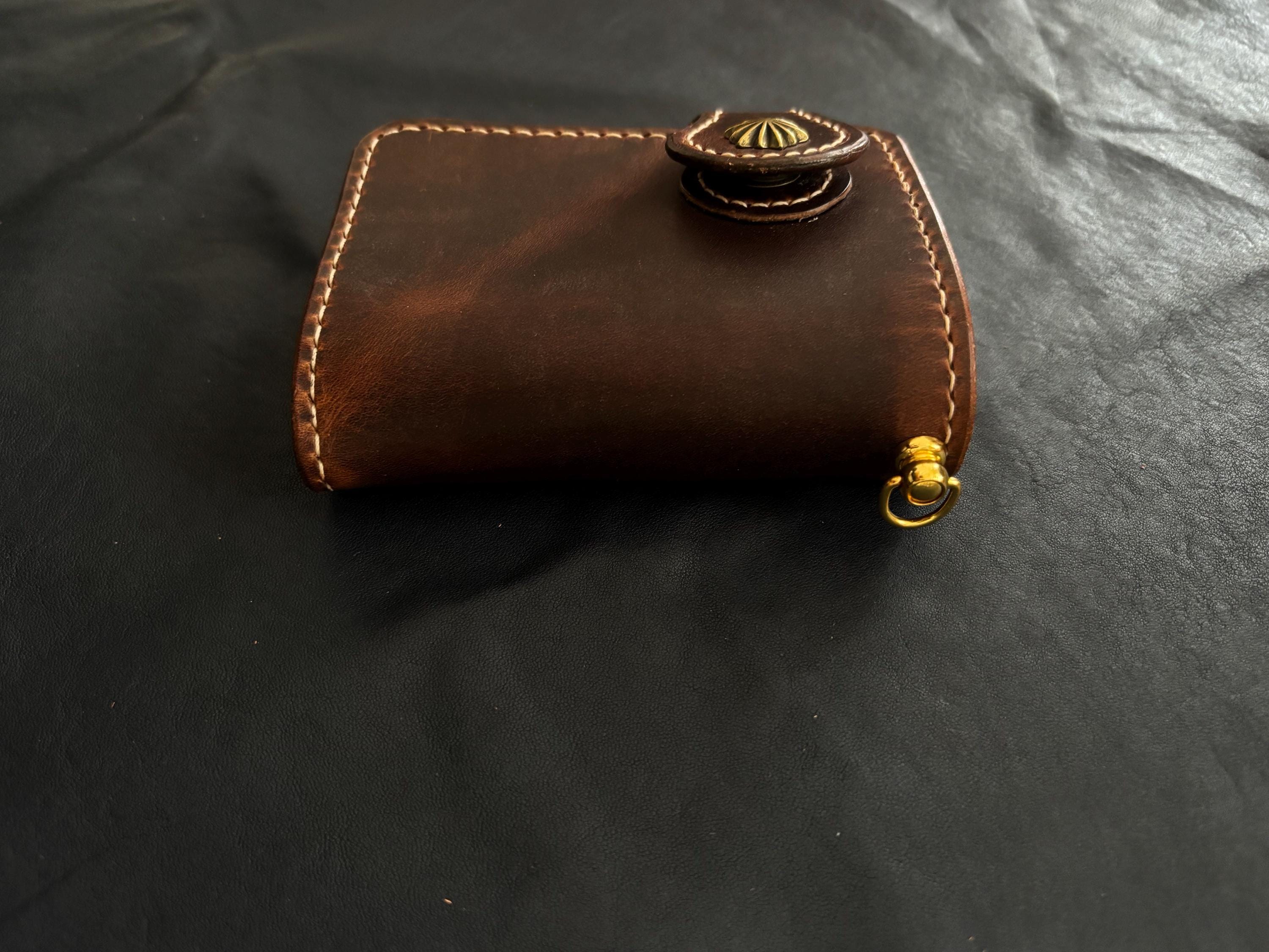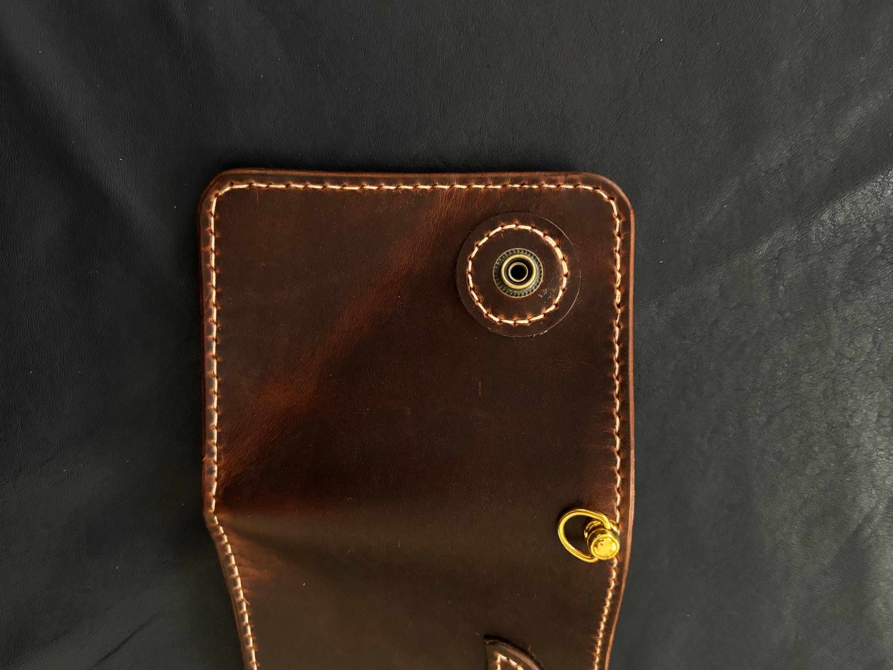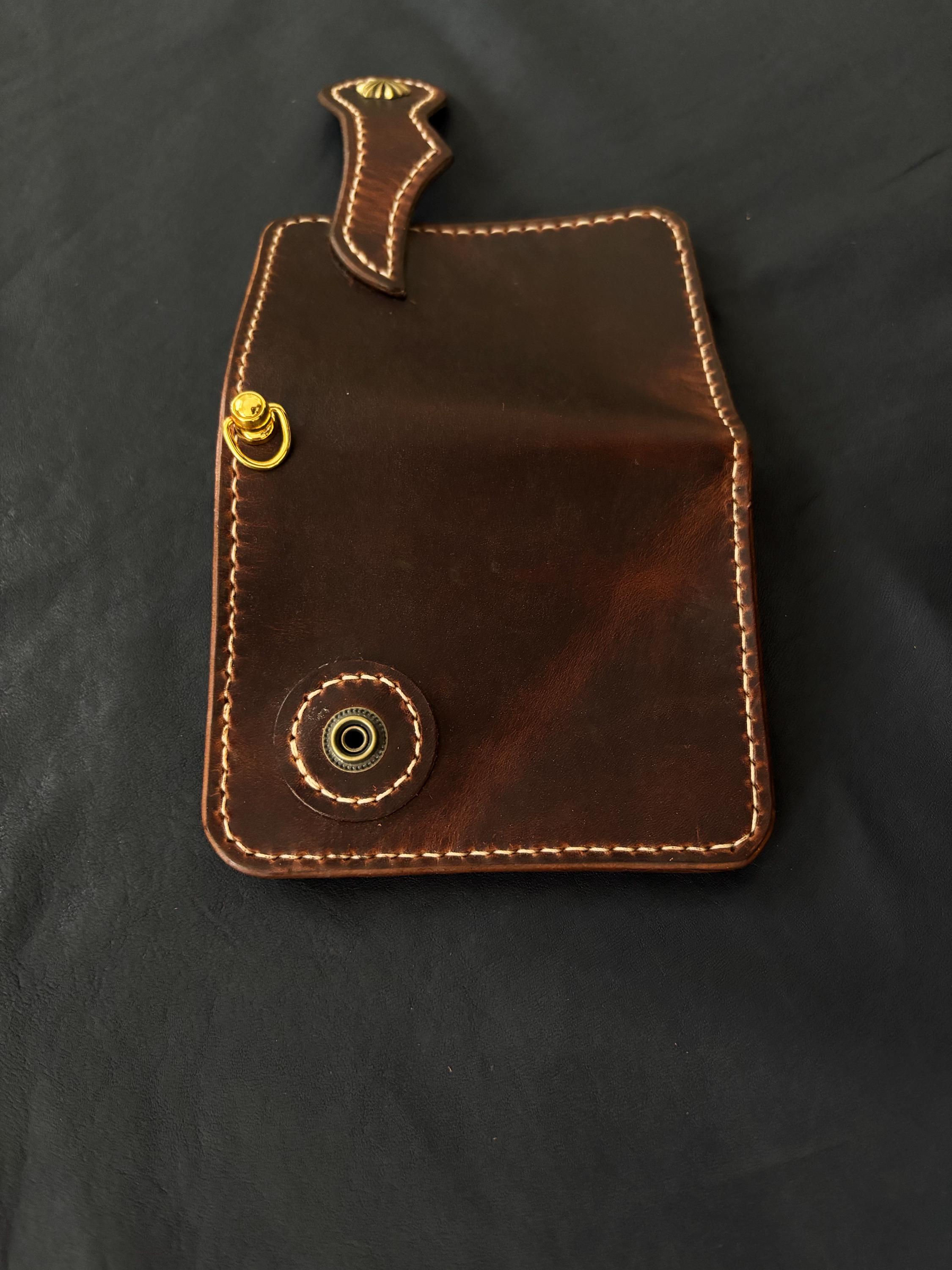 Biker wallet handcrafted using highest quality Cowboy Waxy Vegetable Tanned Leather comes from Conceria La Bretagna Tannery in Italy. It will hold up to the most rugged of use and develop a beautiful and unique patina over time.